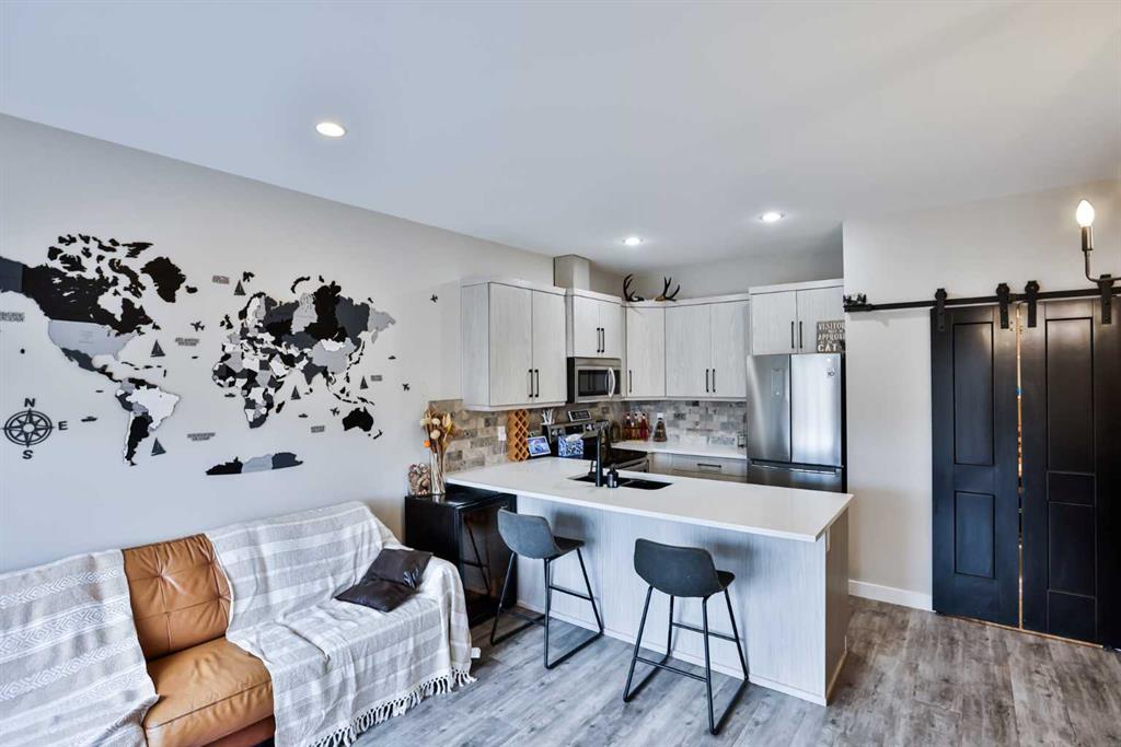 Built in 2018, this fully developed 2-storey townhouse features 2 bedrooms and 3 bathrooms and showcases modern finishes throughout. The main floor offers a bright and functional layout, highlighted by a stylish kitchen with flat-panel white oak veneer cabinetry, quartz countertops, tile backsplash, stainless steel appliances, undermount sink, and a large peninsula that provides plenty of counter and seating space.