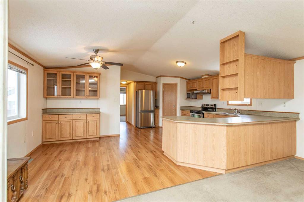 ALL PAVED | PARKING PAD | LOWEST PRICED unit in red deer built newer than 2000!!! Rarely does an opportunity like this come available. Perfectly positioned as an END PROPERTY, you won\'t feel crowded inside or outside. This 1,500 sq ft mobile home offers an exceptional combination of space and privacy. This unit has been PROFESSIONALLY CLEANED, Some steam-cleaned carpets and freshly washed walls, making it move-in ready and PREPPED for a fresh coat of paint. Built in 2006, the home features 3 bedrooms and 2 bathrooms, including a well-appointed PRIMARY ENSUITE. Along with a spacious kitchen designed for both everyday comfort and effortless entertaining. The kitchen has even seen upgrades in appliances to STAINLESS STEEL, Dishwasher (2026). A spacious laundry room with a full-sized washer and dryer, plus extra room for a freezer, is another excellent feature of this property. PETS ARE ALLOWED, with approval from the park. Ideally located with quick access to 59th Ave and 67th St, Within 10 MIN WALK of home: GH Dawe Center, Gas Station, Grocery stores | Within 25 MIN WALK of home: Parkland Mall, Canadian Tire, Edgar Industrial Park... Don\'t miss out on this property!
