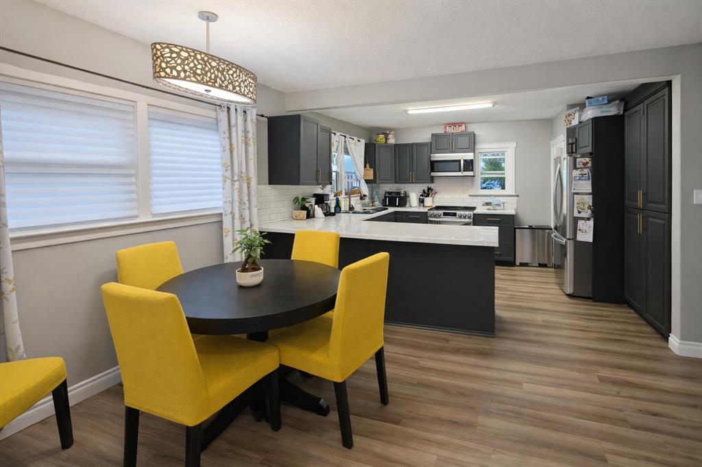 First-Time Buyers, Investors, or Garage Enthusiasts — This One Is Worth a Look! Welcome to this adorable cottage-style bungalow tucked away on a quiet, mature street in the heart of family-friendly Rimbey. Full of charm, thoughtful updates, and incredible potential, this home is ready for its next chapter. Set on a large lot with a single detached garage, there’s plenty of space for hobbies, projects, pets, and backyard fun. The south-facing front deck is the perfect spot to start your day with coffee while enjoying the peaceful neighbourhood and the shade of your very own beautiful chokecherry tree. Step inside and you’ll immediately notice the bright, open main floor where the kitchen and living room flow together—perfect for entertaining friends or enjoying family movie nights. The home has seen many updates in recent years, including brand new upstairs windows, newer vinyl flooring, fresh paint, a stylish backsplash, epoxy countertops, grey-painted oak cabinets, and newer appliances. The main floor features two comfortable bedrooms and an updated bathroom with porcelain tile and a new toilet. Lots of potential in the lower level : the spacious rec room with a cozy wood-burning fireplace could make the perfect hangout for winter evenings, game nights, or a future family space. The seller is even leaving flooring and extra supplies for the next owner to complete the finishing touches. A functional half-bath is already in place. This home also comes with great upgrades and extras, including: Air conditioning, Durable Hardie board siding, New electrical panel (2023), Shingles (2015), Hot water tank (2019), Furnace maintenance and new blower board (2025). Whether you\'re a first-time buyer, young couple, investor, or someone looking to enjoy small-town living, this property offers comfort, value, and room to grow.