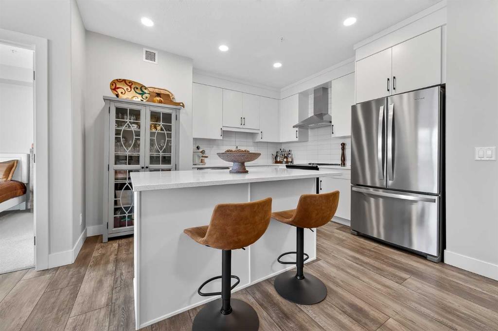 Like new! Immaculately kept 2-bedroom unit in Springbank Hill. Situated with a sunny SW exposure with views over the rooftops of the ravine & the Rocky Mountains. 85th & Park is full of upscale finishings and extras that are not so common in apartment developments. Sprawling modern open plan with room for the largest furniture sets & flooded with natural light. Chef\'s kitchen with quartz island & perimeter countertops, deluxe stainless steel appliance package, full height cabinetry, & timeless subway tile backsplash. 2 very generously sized bedrooms in a double-primary configuration. Both bedrooms enjoy full ensuite bathrooms & large walk-though closets. Spectacular storage with 2 storage lockers; one located on the same floor as the unit, and another above the parking stall. Fantastic for tires, seasonal equipment, and more! Just steps to all the many amenities of Aspen Landing and minutes to transit, shopping, community rec centers, West Springs, & all amenities. A premium location in Calgary\'s West side at a very affordable price point offering exception value!