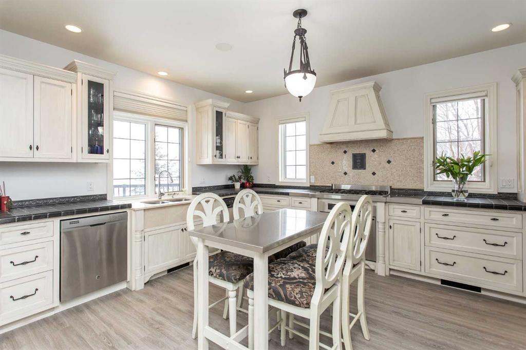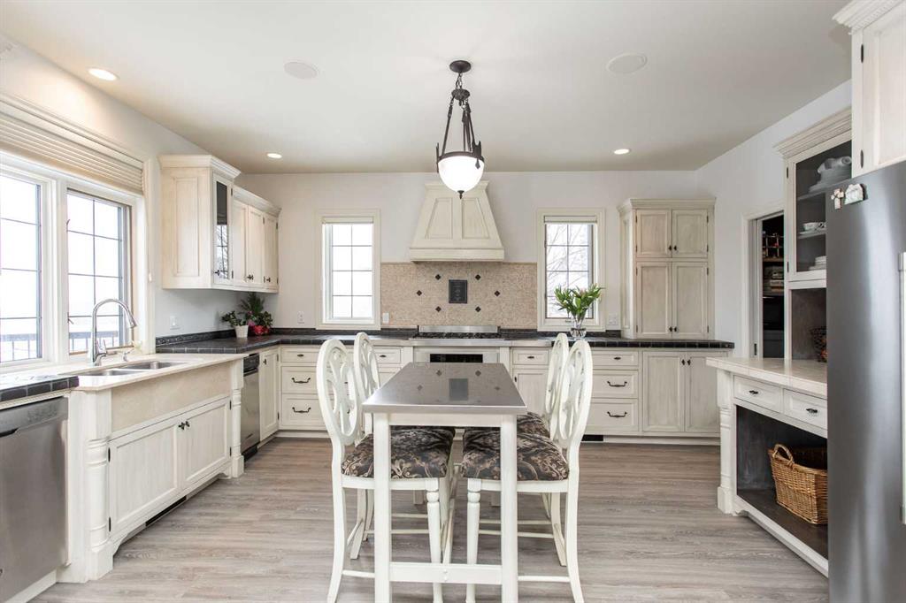 ~IMPRESSIVE ESTATE PROPERTY~ in the beautiful subdivision of BURBANK HEIGHTS! Situated on 2.99 acres, with BREATHTAKING VIEWS. This home offers privacy, AFFORDABILITY and room to grow! Greeted by a spacious slate entrance, that leads to a BRIGHT BEAUTIFUL OPEN CONCEPT. From the living, dining and kitchen all you can see is BLUE SKIES, wildlife, and feel the peace and serenity all around. The main floor has newer LUXURY VINYL PLANK, all freshly painted walls and tastefully decorated. A gas fireplace in the living room with stone surround, from floor to ceiling, with a beautiful wood mantle, ceiling fans, and large windows, open to the dining room that features a door to the MAINTENANCE FREE MASSIVE DECK. There is a spacious kitchen that features a wall oven, gas cook top, hood fan, and built in dishwasher, (all stainless steel) A beautiful black stone countertop, abundance of counter space, and travertine backsplash. A walk-in pantry with built in cabinets, washer, dryer and sink. Main floor also features a 2-piece powder room, and rear entrance to the back yard with bult in locker space and bench. Upstairs, features incredible large bedrooms, the master has two closets, his/hers, ceiling fan, built in storage cabinets, and a stunning 5-piece ensuite. There is an oversized soaker tub, newer tiled shower, and dual sinks. There are three more bedrooms, two are located at the front and the third is at the back, (currently used as office space) but its enormous size would be ideal for a bonus room for the entire family. In the fully developed basement, you will appreciate the functional floorplan and the perfect area to entertain friends and family, with a full-size wet bar, built in cherry cabinets and tv/ games room, all with OPERATIONAL IN FLOOR HEAT. The basement also features a 5th bedroom that has a built-in desk area, walk in closet and room for two queen beds. There is a 3-piece bath, with walk in custom tiled shower. Located in the front with incredible views is your 4-season tiled sunroom, currently used with gym equipment, and space for children and grand children. An endearing property both inside and out! A double HEATED ATTACHED GARAGE has a man door to the back yard, and a DOUBLE HEATED DETACHED GARAGE. The detached garage has a GUEST HOUSE above featuring a full-size kitchen, vaulted ceilings, living room, a large bedroom with a walk-in closet and finally a beautiful 3-piece bathroom. The guest home also has its own laundry facility. Outside you\'ll appreciate your very OWN GARDEN, garden shed and SOUTHWEST EXPOSURE!