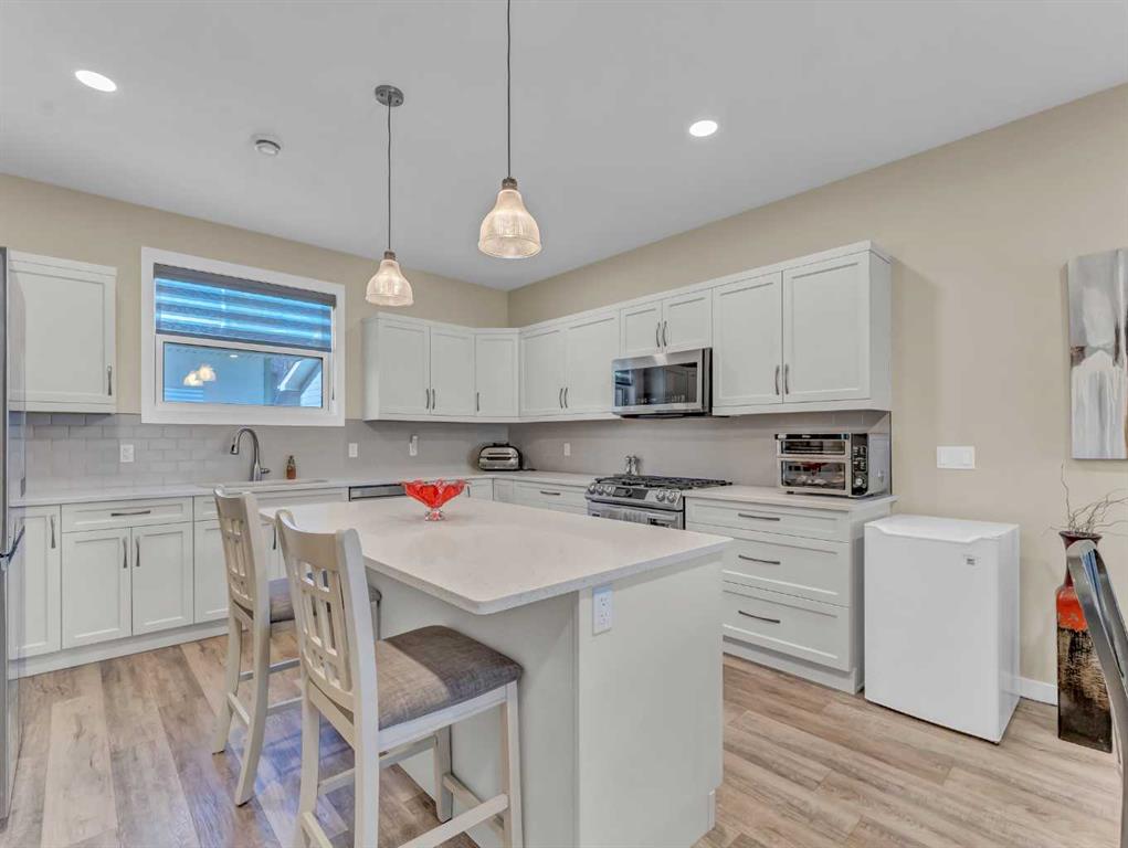 Welcome to this amazing and unique opportunity to own a home in pristine condition with a view in the scenic Ranchlands neighborhood. With a total finished Sq footage of 2,440 Sq ft The home features a non conforming mother in law suite/ Secondary Kitchen in the basement and a maintenance free yard. From the open main floor you will enjoy the coulee and river views from the living room, dining area and kitchen. These areas feature high quality finishes that flow throughout the home. You will appreciate the space provided by and the quality of the kitchen cabinets and quartz countertops. The front covered deck and master Bedroom offer the opportunity to enjoy the beautiful scenery right outside your front door. The Master Bedroom is spacious and features a walk-in closet, secondary closet, and double vanity ensuite. You will also love spending time in the master ensuite bathroom enjoying your self-contained steam shower with mood lighting and a stereo. The second floor has 2 additional bedrooms, a 3-piece guest bathroom, and a conveniently placed laundry room. The laundry room has a vroom central vac attachment, a quartz folding counter above the washer and Dryer and Cabinets to neatly house your supplies.
