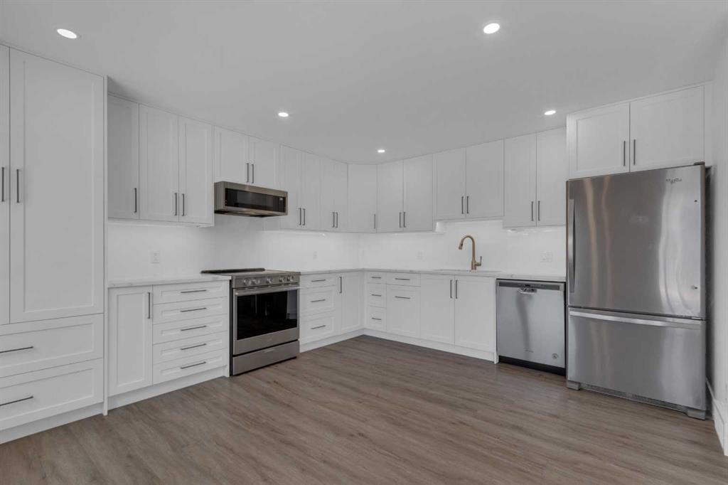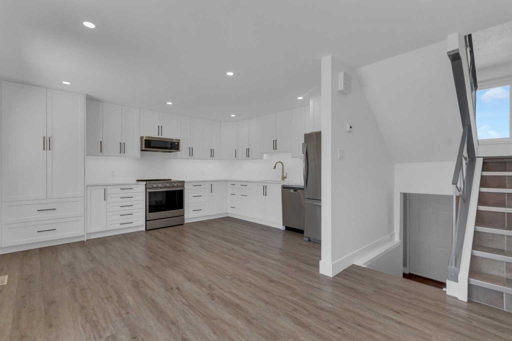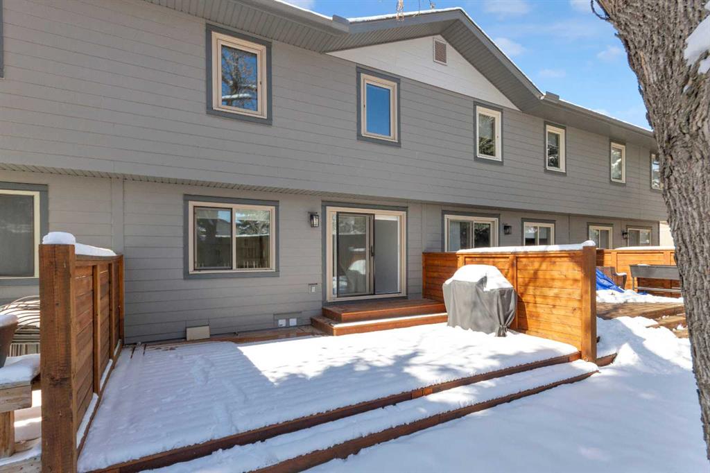 Welcome to this spacious, updated townhome located on Fish Creek Park. Woodacres is a desirable condo complex with 23 residences in exclusive Woodacres in Woodbine. Plenty of natural light floods the beautifully renovated white kitchen with stainless steel appliances. The dining nook is located in this large space where patio doors invite you onto the newer cedar patio with portable bbq. Views from the living room with cozy fireplace make relaxing a dream. The second bedroom with den/flex area is housed on the next level with updated 4-piece bathroom (original 2 bedrooms were converted to 1). Quietly situated on the top floor is the oversized Primary Bedroom with 3-piece ensuite, large closet and two windows. Located in the lower level you will find a family room, 2-piece bathroom, utility room and storage. The single garage has direct access into the foyer. Storage unit and extra fridge included. Additionally, there is space for a second vehicle in the front driveway. Upgrades to this property include; kitchen, laminate flooring, windows, main bathroom and cedar deck. Hardy board siding, along with garage doors and outdoor lighting were also completed in the past few years. Bebo Gardens in Fish Creek Park is steps away. Easy access to shopping, schools and transportation. Quick possession available.