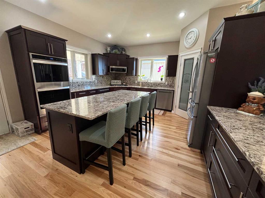 Welcome to this beautiful, one-of-a-kind property located on the south end of town, offering stunning views of the river right from your front veranda. With over 1,800 square feet of thoughtfully designed living space, this home features 5 spacious bedrooms and 3 full bathrooms — perfect for growing families or those who simply want more room to spread out. Step inside to find a bright, open-concept layout with recent renovations throughout, including brand new hickory hardwood flooring, granite countertops, and plenty of updated cabinetry including a new large island and custom built-in buffet. The kitchen is a chef’s dream with all new stainless steel appliances, featuring a gas stove top and double wall ovens. Step out onto the covered back deck or relax on the wraparound front veranda as you take in serene river views. The huge yard is ideal for people wanting to enjoy the outdoors with a large concrete patio and a fenced garden area that would be any gardeners dream with newly constructed multiple raised beds, it is ready for your green thumb. For those needing garage space, the large attached heated 2-car garage offers plenty of room. But that’s not all — there’s also a recently built 32x40 heated shop with 10\' and 12\' doors, perfect for your RV, boat, workshop, or other toys. This is more than a home — it’s a lifestyle. Don’t miss your chance to own this unique property with space, comfort, and views that are hard to beat. Call for your appointment to view.