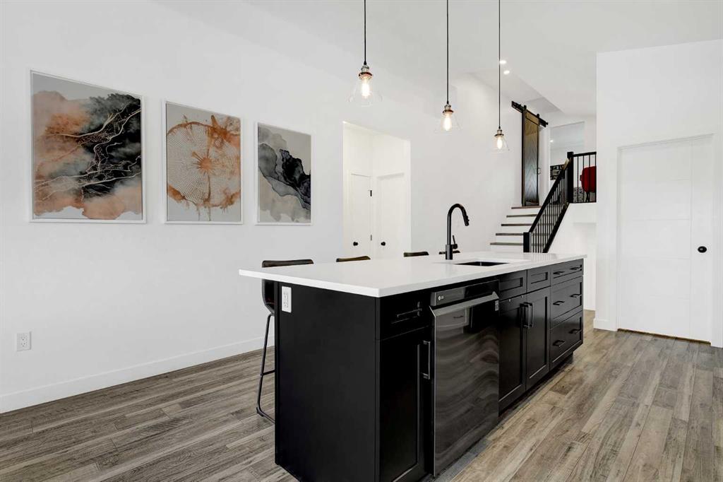 The 1,600+ sq. ft. upstairs suite is thoughtfully designed and includes laminate flooring throughout, air conditioning, and a tankless hot water system. The modern kitchen is equipped with stainless steel appliances, a large island, and a walk-in pantry—perfect for both everyday living and entertaining. The bright living room showcases a beautiful fireplace and a large window that fills the space with natural light.