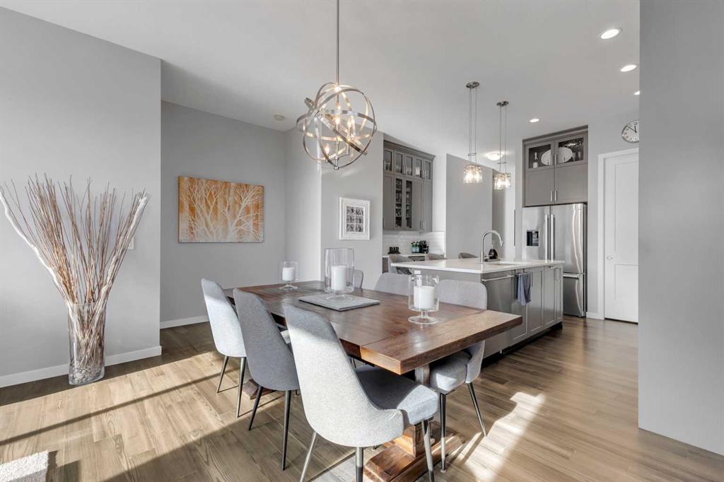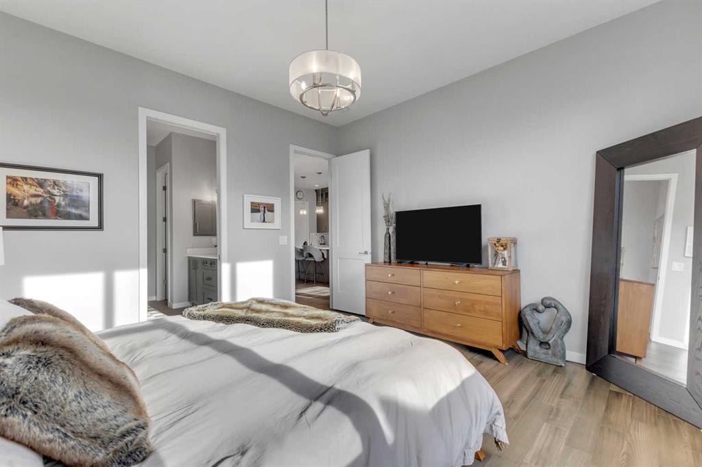 Welcome to this stunning luxury bungalow with an upper loft nestled in the heart of the highly sought-after Riverstone community in Cranston. Surrounded by nature and located along the edge of the Bow River, Riverstone offers breathtaking scenery, tranquil walking paths, and an unmatched sense of peaceful living. Perfectly positioned on a corner lot backing directly onto a pathway, this exceptional home offers the rare combination of refined indoor living and serene outdoor surroundings. With over 2,900 sq ft of developed living space this thoughtfully designed home offers a total of five bedrooms, making it ideal for both growing families and those looking to downsize. Step inside to an inviting open-concept layout highlighted by wide-plank flooring, soaring 10-foot ceilings, and elegant 8-foot doors throughout the main level. Natural light floods every corner through the array of additional east facing windows. The expanded gourmet kitchen features a sprawling island, beautiful quartz counters, upgraded stainless steel appliances, a beverage fridge, large pantry, and custom ceiling height cabinets - perfectly designed for those who like to cook and entertain. The dining area easily accommodates larger dinner gatherings and flows seamlessly into the spacious great room with views of the perfectly manicured back yard. The primary suite is a true sanctuary, complete with a luxurious ensuite that features dual vanities, a fully tiled walk-in shower, a soaker tub, and a walk-through closet connecting to your main floor laundry room. This home also features a rare and highly sought-after upper bedroom/loft with a walk-in closet, offering exceptional flexibility for use, including as an office space. A stylish 2-piece powder room and large mudroom complete the main level. The fully finished lower level expands the home’s living space with a large open recreation and family area, perfect for movie nights or entertaining. In-floor heating throughout ensures year-round comfort, while three additional bedrooms and a full four-piece bathroom offer flexible options for guests, teens, or extended family. The backyard is a professional masterpiece featuring a large tiered deck, a patio, shed, and a cozy firepit area. An abundance of trees, shrubs, and vibrant perennials are perfectly arranged to create both beauty and a serene, private space for relaxation. This home truly reflects pride of ownership; every feature is thoughtfully designed and maintained to the highest standards. Additional upgrades including central A/C, exterior security cameras, extended garage, 36\" bathroom vanities, and high-end lighting, enhance this home\'s beauty.