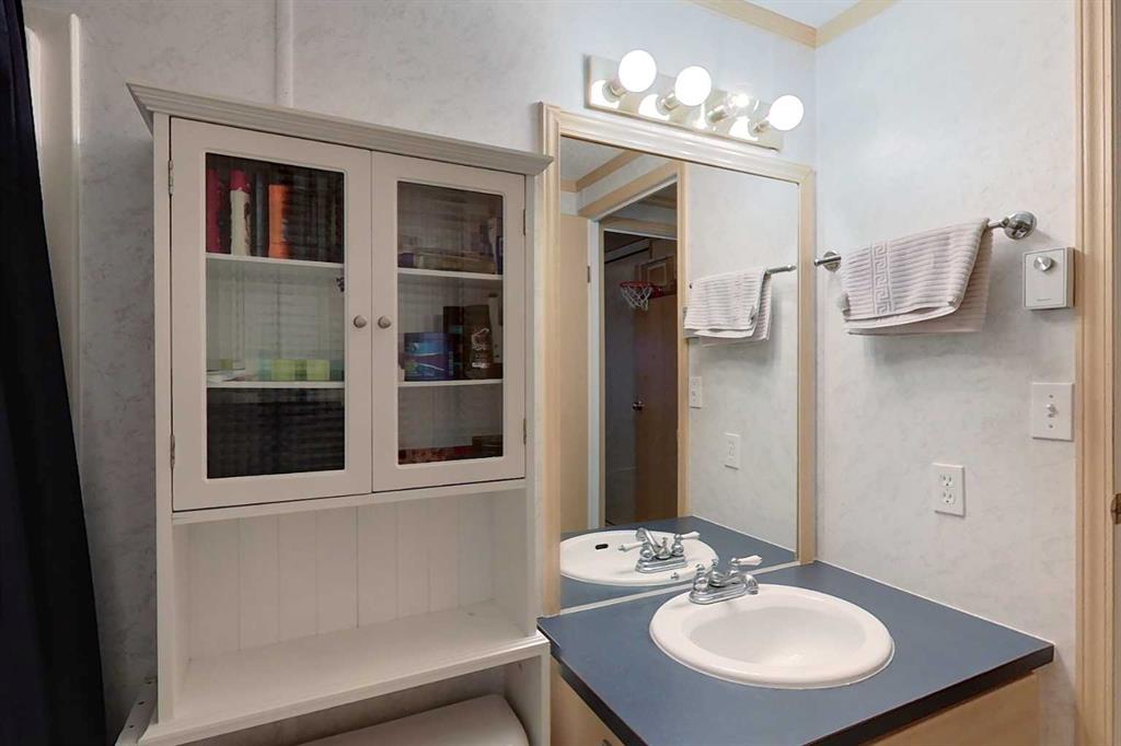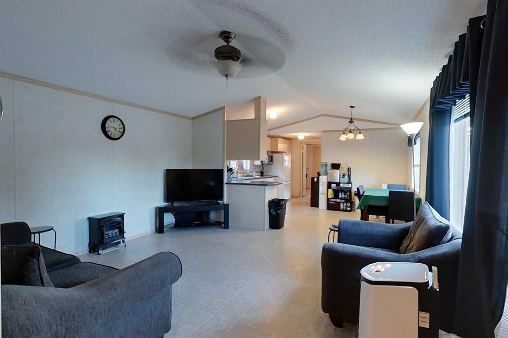 Cute as a button, 2003 - 2 bedroom, 2 bathroom mobile on a corner lot! Kitchen has light maple cabinets and contrasting dark counterops, seperate laundry room, spacious kitchen/dining area. Primary bedroom is large with a good sized walk in closet and 4 pc ensuite. This is a perfect starter home or use as an investment and rent it out!