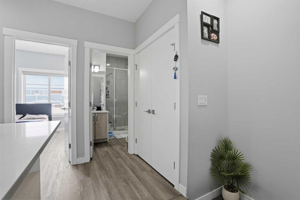 *Former Show Home* | 3-Bedrooms | 3-Bathrooms | High Ceilings | Open Floor Plan | Stainless Steel Appliances | Quartz Countertops | Balcony | Attached Garage. No expense was spared in the creation of this jewel. Welcome to this stunning 3-storey townhouse with low condo fees boasting 1,236 SqFt. The main level of this home is a tandem double garage and a personal entry door. Head upstairs to a bright and welcoming 2nd floor emphasized by 9-ft ceilings, an open concept layout, and many large windows allowing an abundance of natural light. The home is skillfully designed to include a bedroom and full 3pc bathroom on the 2nd level. It\'s all in the details; the main level bathroom features a glass door shower with gorgeous tiled walls. The living room, kitchen and dining area flow together and lead outside to a generous walk-out balcony. The living room accent wall is TV ready and has a beautiful electric fireplace. Let\'s talk about the kitchen! Kitchen features full height cabinets, ample storage space, exquisite quartz counters, stainless steel appliances and beautiful honeycomb backsplash. The massive island with barstool seating is a great addition for social cooking. Now making our way to the upper level we find 2 large bedrooms and TWO ensuites. The primary bedroom features His & Hers closets. Both ensuites are accented with incredible tiled backsplash and a tub/shower combo with incredible tiled backsplash. The upper level laundry is well placed near the bedrooms for easy access. Parking is not a problem as there is a double tandem garage. This complex has low condo fees and is nicely surrounded by green space and courtyards with unique architecture and easy access to main transportation routes to get you where you want to go in all directions. Walk or bike along the pathways or to shop; enjoy the parks and playgrounds of your new home! Hurry and book a showing of this incredible property today!