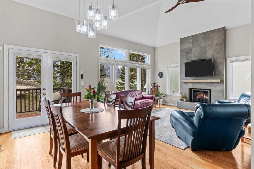 Luxury Mountain Living in Prestigious Silvertip. Not your average townhome! Are you looking for townhome living with solitude and privacy? Then welcome to luxury mountain living in prestigious Silvertip! This renovated townhome is nestled in a community of luxury homes. Boasting 3 bedrooms, 3 bathrooms, and over 2,200 sq ft of thoughtfully designed living space, this home combines modern touches with cozy mountain charm. The entryway is warm and inviting, featuring custom-built-ins and stylish herringbone tile flooring. The main level impresses with soaring vaulted ceilings, abundant natural light, and stunning mountain views. The rich hardwood floors flow through to the main living space, creating a bright and airy ambience throughout. The open-concept kitchen is perfect for entertaining, complete with high-end finishes. Also on the main level is a 3-piece bath, spacious bedroom and deck access. Upstairs, you will find the master bedroom retreat complete with walk-in closet, 5-piece en-suite and a private deck with mountain views. Downstairs, the fully developed walkout basement with nine-foot ceilings offers a spacious family room, wet bar, wine fridge, home office space, 5 piece bathroom, bedroom, laundry, additional storage as well as access to another deck and stone patio — ideal for hosting guests or creating your personal haven. Enjoy in-floor heating, two fireplaces, three private decks and a stone patio that showcases breathtaking mountain views. After a day of adventure, unwind in the 2 luxurious soaker tubs and store your gear with ease in the oversized single garage, outdoor under-deck storage shed, or under-stair storage. This elegant townhome delivers a rare combination of private refined living, functional space, and unparalleled quiet in natural surroundings. Don’t miss the opportunity to call this mountain sanctuary home!