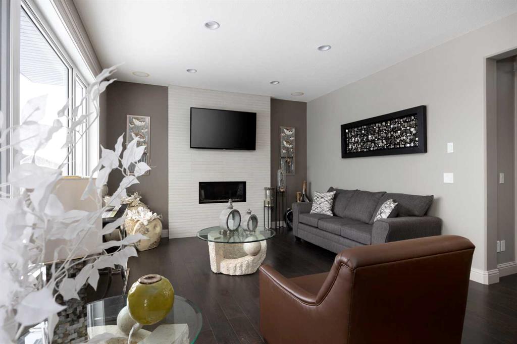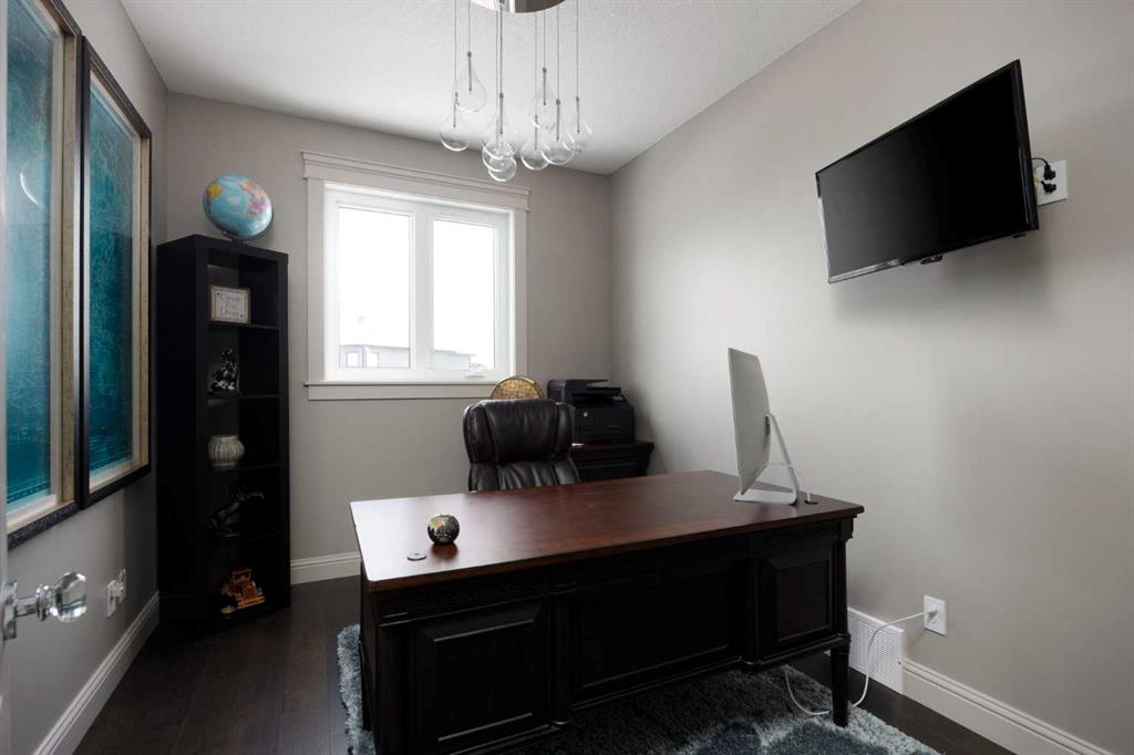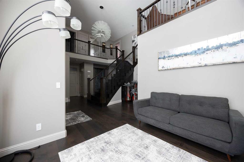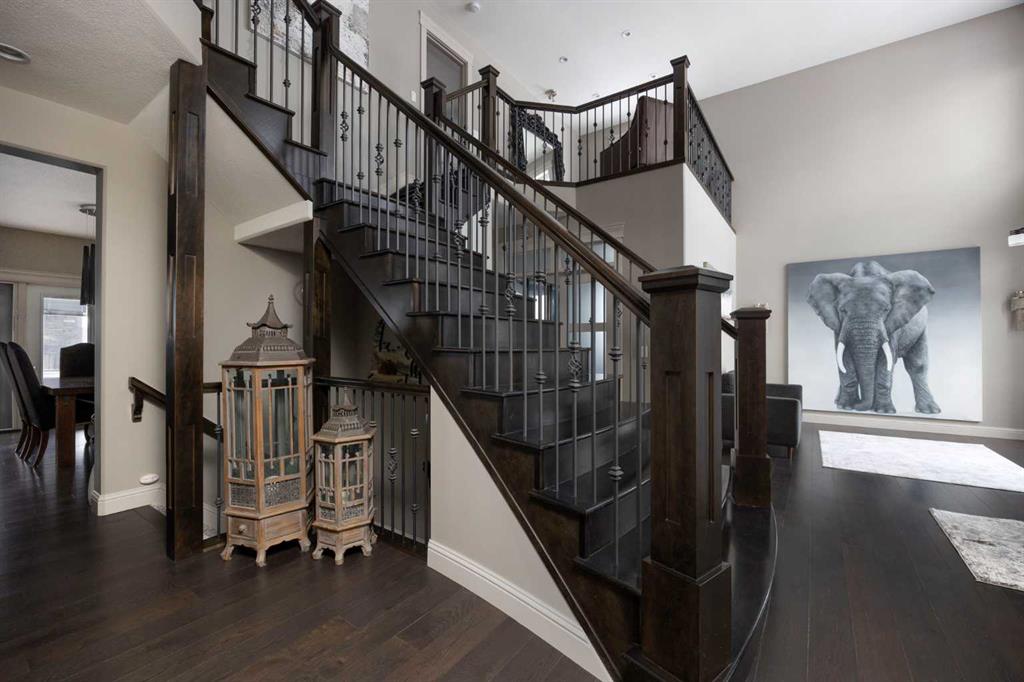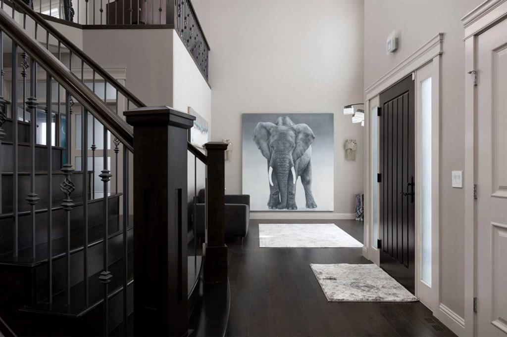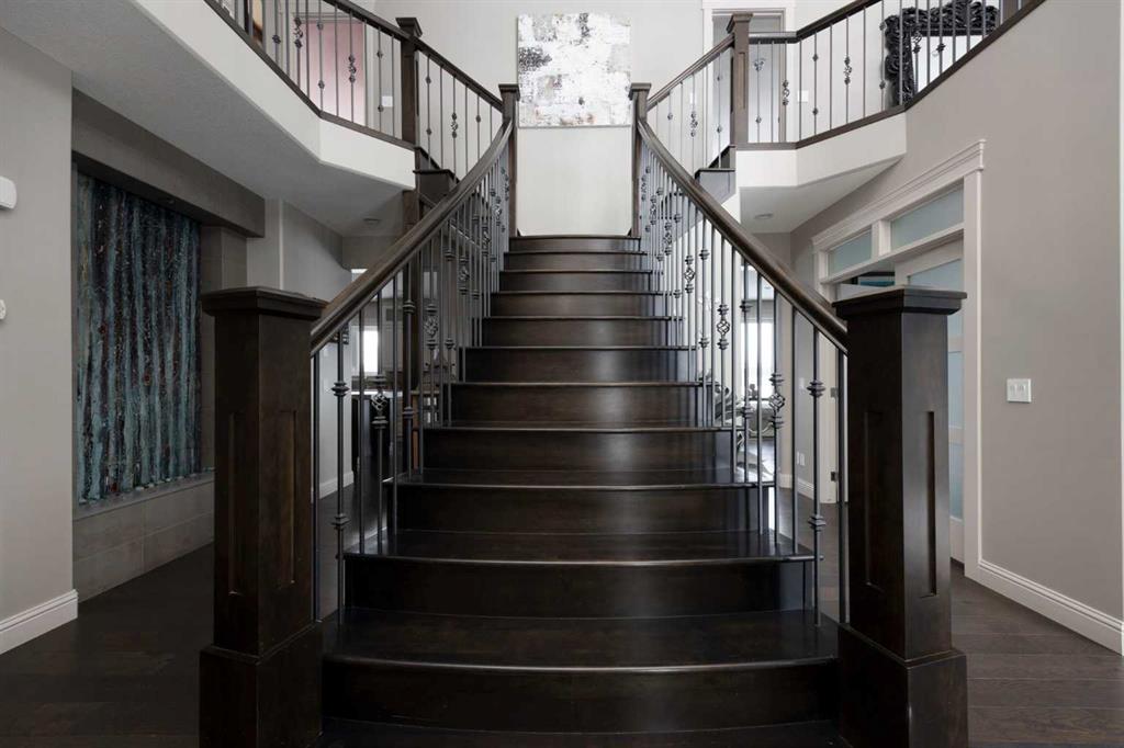 Step through the front door and feel the shift immediately. The grand foyer opens all the way to the second floor, where a gorgeous flared staircase sweeps upward and absolutely commands attention. An elegant indoor wall fountain welcomes you at the entrance, its presence instantly signalling that this is no ordinary home. Crown moulding flows seamlessly through every room. The open concept main floor is anchored by a striking fireplace with a crisp white surround that draws the eye the moment you walk in. The main floor den is a quiet and refined space, perfect for focused work, a home office, or simply unwinding at the end of a long day.