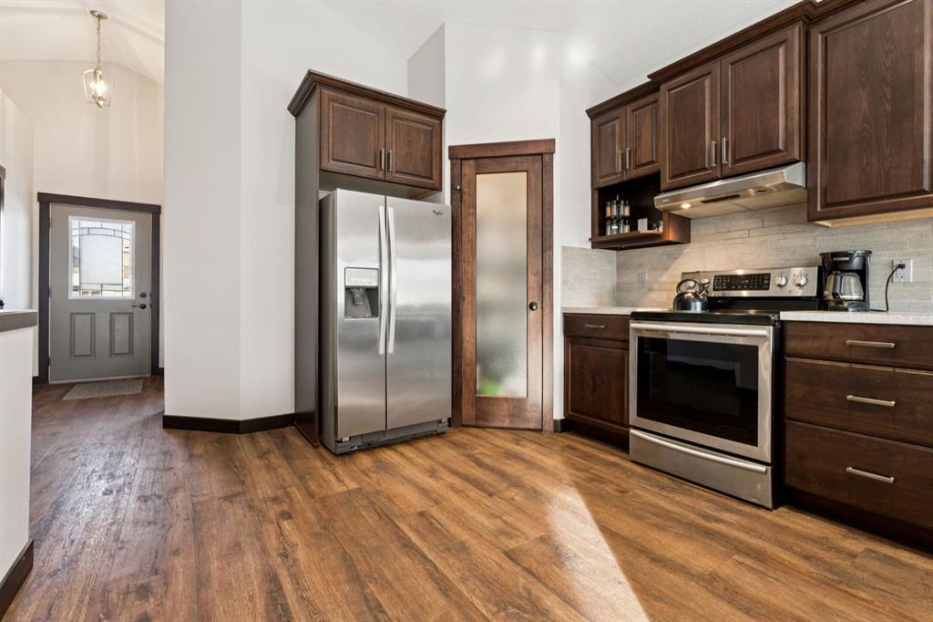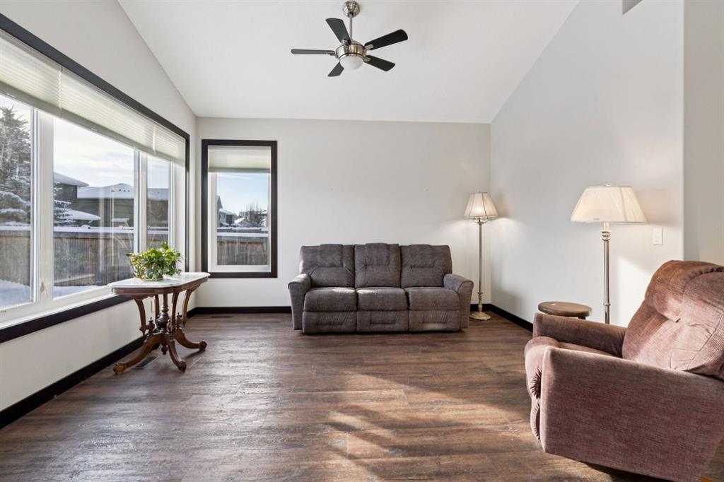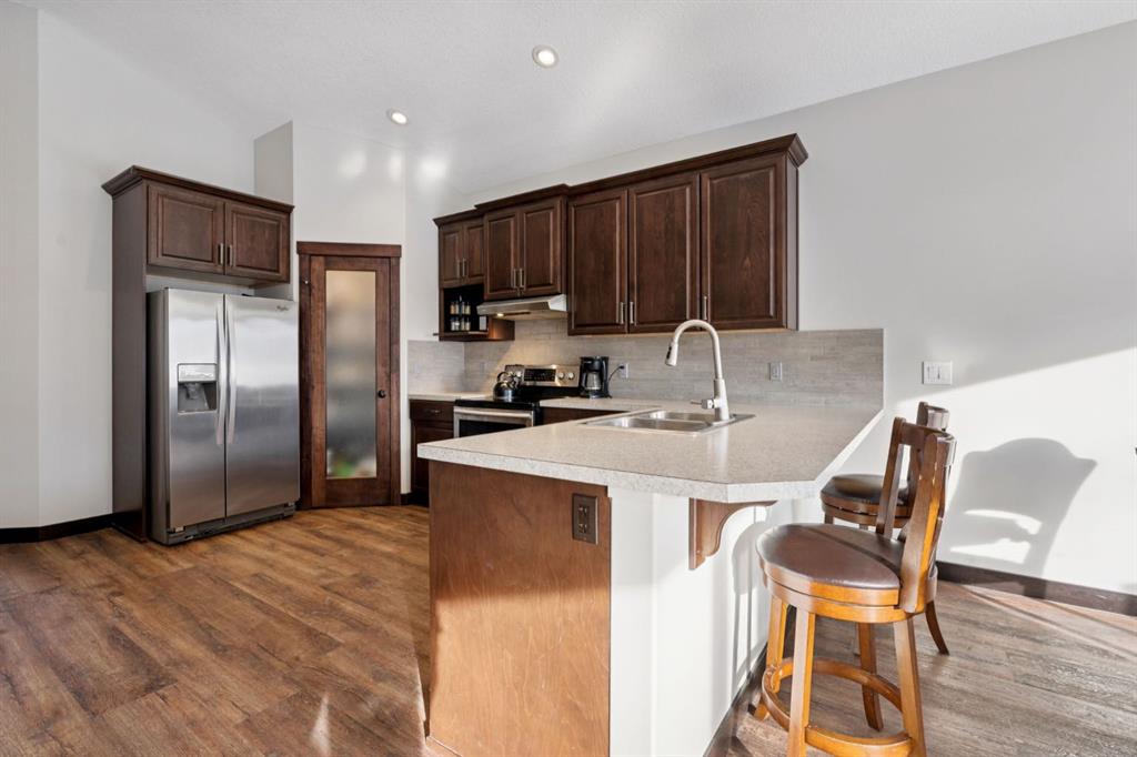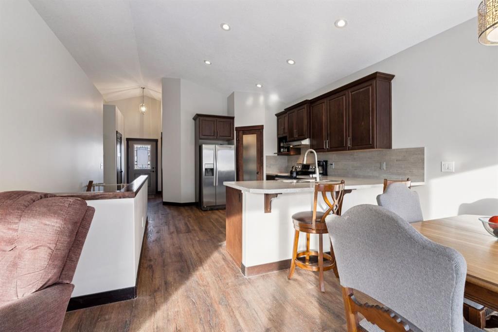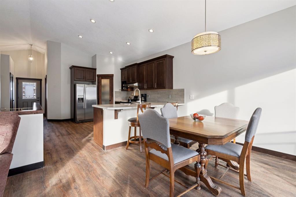 This is the one you have been waiting for! The bungalow that fits your lifestyle, but still has style! When you first walk in you will be taken aback by the soaring vaulted ceilings, Luxury Vinyl Plank flooring throughout, and fresh professional paint done March 2026. Moving to a bungalow shouldn’t have to mean down sizing. This place offers 1288 SF of tasteful finishings all on one level. With 2 Bedrooms and 2 bathrooms as well as a reading room, there’s plenty of space. The full size kitchen offers beautiful European Beech wood cabinets and a walk in pantry. Pull up a stool at the counter height breakfast bar and sip your coffee/wine while the cook is at play! The open concept kitchen, dining, and living room allows for plenty of room for family gatherings, whether its the weekly Sunday dinner or a full on Thanksgiving get together. Why choose Riverwood? Just stand on the sidewalk for 10 minutes and the abundance of friendly neighbours stopping to chat to see how you’re doing will be enough to convince you that this is a connected neighbourhood. It\'s like CHEERS where everybody knows your name! Besides the wonderful neighbours, Riverwood Way offers direct access to walking paths and green space, as well as a children’s park at the end of the street. This is Diamond Valley’s sought after Riverwood community. Enjoy a peaceful, walkable neighbourhood with parks, nature trails, golf, breweries, restaurants, and schools all nearby, plus quick access to Kananaskis, 15 minutes to Okotoks, and 25 minutes to Calgary. The Hospital is easily accessible, as well as the new shopping complex soon to be built (Sobey’s, Dollarama, Shoppers Drug Mart, McDonalds). Don’t wait, let’s get you into your next chapter now!