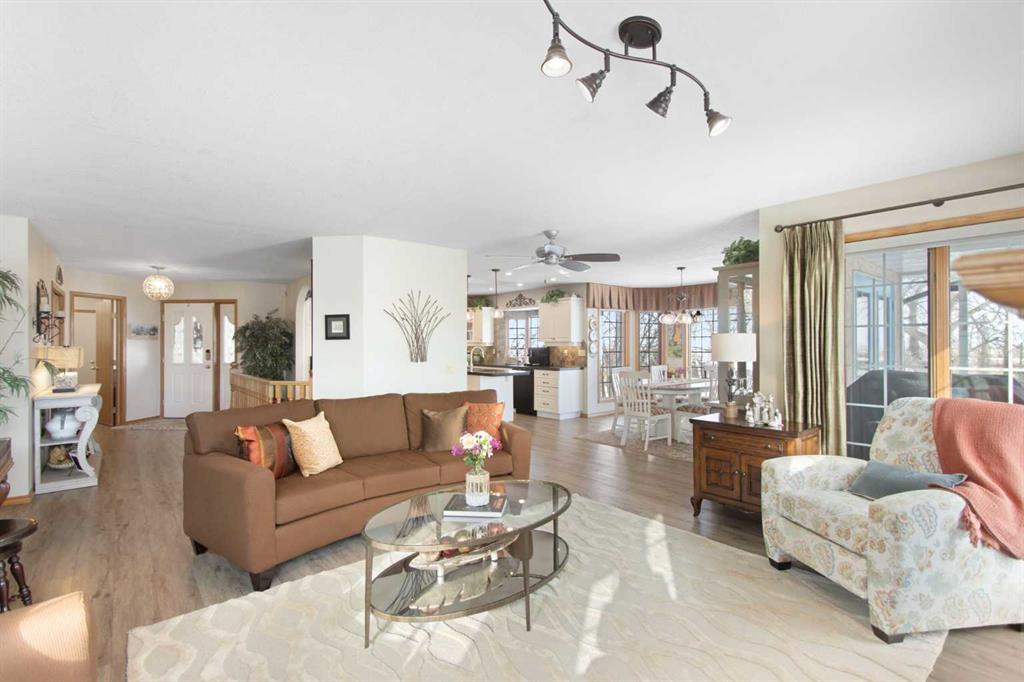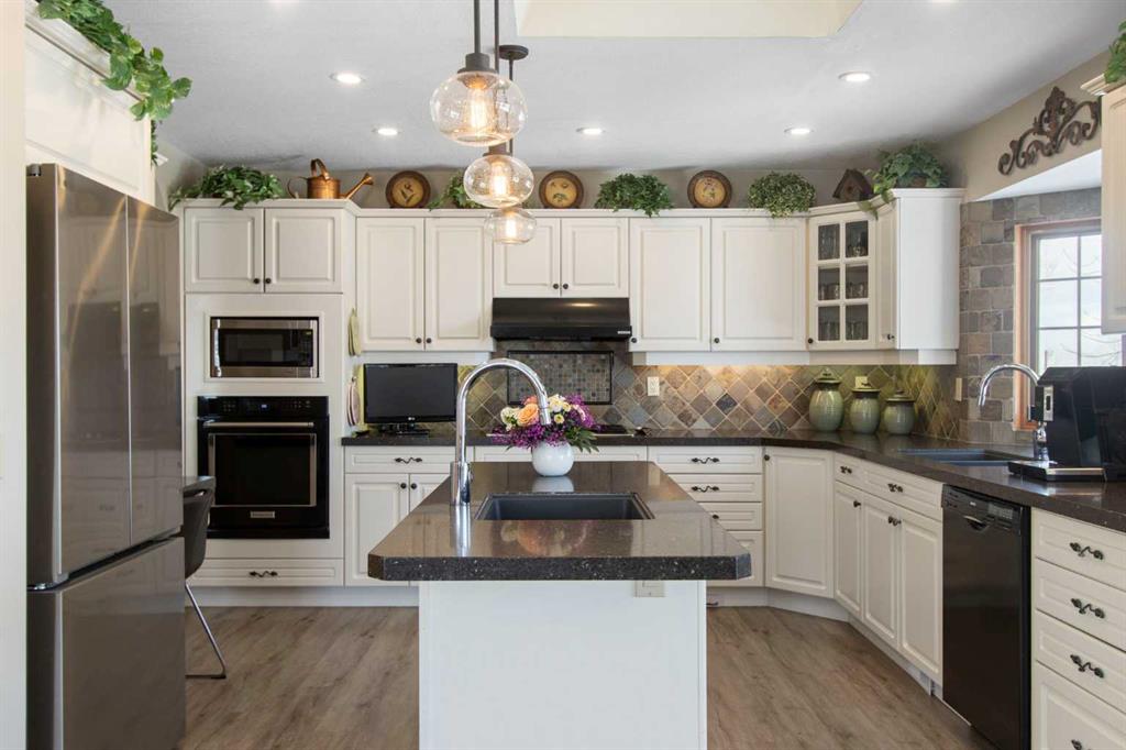 Welcome to this exceptional 23-acre property in Rocky View County, located in a newly formed subdivision and proudly offered by the original owners. A paved driveway installed in 2024 leads you to a beautifully maintained 1,841 sq. ft. walkout bungalow that perfectly blends comfort, functionality, and country living. The home features a spacious and well-designed layout with an attached 634 sq. ft. double garage, providing plenty of room for vehicles and storage. The kitchen and several areas of the home have seen recent renovations, offering a fresh and updated feel while maintaining the warmth of this well-cared-for property. The kitchen is equipped with plenty of cabinetry, center island, quartz countertops and a modern backsplash, making it both stylish and practical for everyday living and entertaining. A cozy fireplace creates a welcoming focal point in the main living area, perfect for relaxing evenings. The fully finished walk out basement boasts 2 more large bedrooms, 3 piece bathroom, family room with another fireplace and plenty of storage. Built for durability and long-term peace of mind, the home is topped with an interlock metal shingle roof with a lifetime guarantee, while eavestroughs with leaf guards reduce maintenance. Recent upgrades ensure efficiency and reliability, including a new high-efficiency furnace (2024) hot water tank (2025). The home also features in-floor hot water heating in both the basement and attached garage, creating consistent and comfortable warmth year-round. All plumbing throughout the home has been updated to PEX, and an electrical transfer switch for a generator adds extra convenience and preparedness. Outdoor living is just as impressive. Enjoy a 10 x 14 ft attached screened room with composite decking, perfect for relaxing while staying protected from the elements. Two outdoor attached patios offer multiple spaces to entertain, including one with a pergola and hot tub, ideal for unwinding while taking in the peaceful country surroundings. A firepit area completes the outdoor gathering space for evenings with family and friends. The 36 x 52 x 10 ft insulated metal shop is a standout feature of the property. It includes a cement floor, three overhead entry doors, and is fully wired with 110/220 volt power, making it ideal for hobbies, equipment storage, or a home-based business with the advantageous Ag zoning. Like the home, the shop is equipped with eavestroughs and leaf guards for added durability and low maintenance. Surrounding the home is an amazing mature yard that has been lovingly established over the years, offering privacy, shelter, and beautiful natural landscaping. The 23 acres provide a perfect mix of crop, fenced coulee, metal livestock pen with shed and established greenery, creating a peaceful rural setting while still being within reach of nearby amenities.Perfect size land base for small cattle hobby farm or build the arena for the horses. All roads paved to the door just 1km west of QEII.