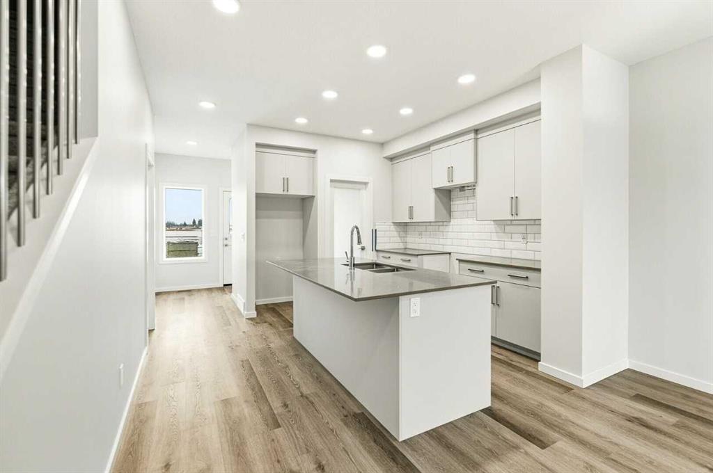 Immediate possession available at 157 Lincoln Crescent. This 1,517 sq ft Bedrock Homes property offers 3 bedrooms and 2.5 bathrooms with a bright, open-concept main floor designed for modern living. The kitchen features quartz countertops, contemporary cabinetry, and a large island that flows seamlessly into the dining and living areas. Upstairs, the spacious primary bedroom includes a walk-in closet and private ensuite, complemented by two additional bedrooms, a full bathroom, and convenient upper-floor laundry. Large windows fill the home with natural light, creating a warm and inviting atmosphere throughout. A gravel parking pad provides off-street parking with potential for a future garage. Located in a desirable community close to parks, pathways, schools, and local amenities, this move-in-ready home offers exceptional value and comfort for families and first-time buyers alike. Photos are representative.