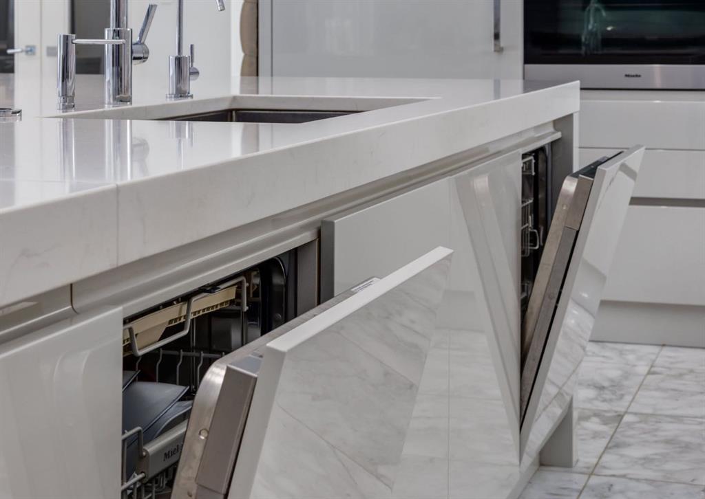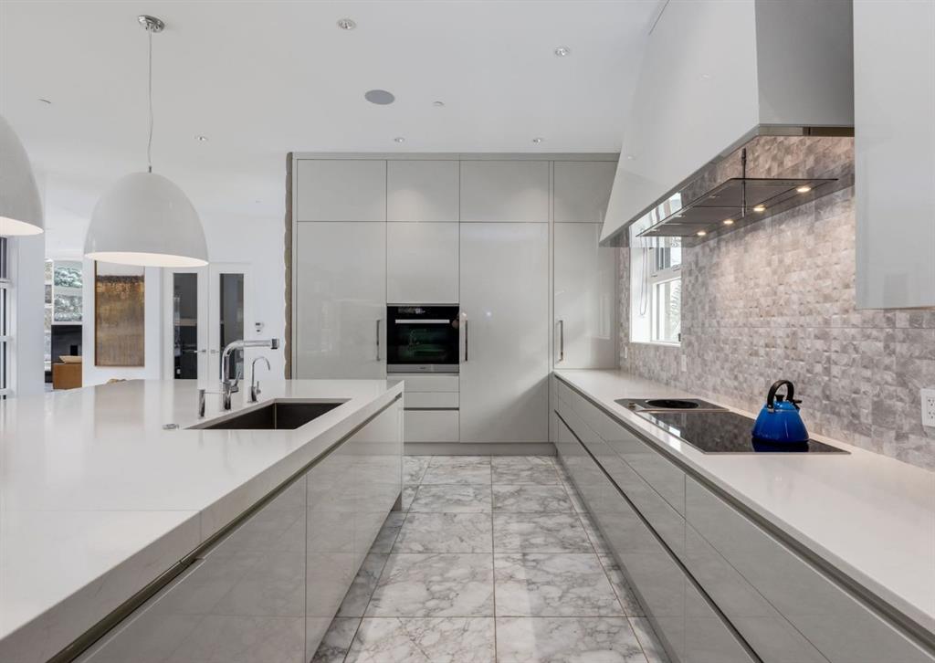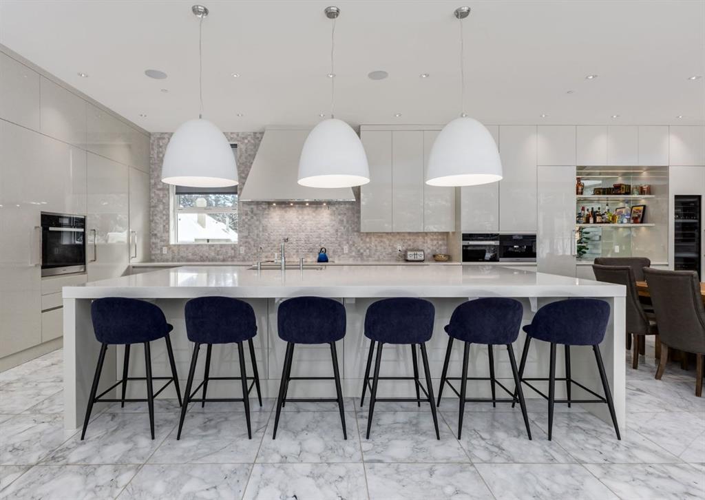 Stunning modern estate offering a rare combination of architectural excellence, elevated craftsmanship, and thoughtfully designed family living, ideally situated on a quiet cul-de-sac on over a quarter acre in the prestigious community of Pump Hill. Built in 2016, this remarkable legacy home was designed by the award-winning Vancouver firm Stuart Howard Architects, with interiors by acclaimed designer Paul Lavoie, and constructed by Riverview Custom Homes. From the moment you arrive, the home makes a statement. An impressive 9-foot pivot door opens to a grand foyer with soaring ceilings, expansive walls of triple-pane windows, a dramatic open-riser staircase, dual closets, and a newly upholstered bench. Inside, 5,500 square feet of living space unfolds with light-filled rooms and seamless indoor-outdoor connections. The open-concept main level is designed for both elegant entertaining and comfortable everyday living. A stunning executive office features custom millwork and tranquil views of the surrounding trees. The living room is anchored by a sleek Ortal fireplace and heated marble flooring, creating a warm yet contemporary gathering space. At the heart of the home is a chef-inspired kitchen showcasing quartz countertops and a premium Miele appliance package, including 72\" of panelled refrigeration, induction cooktop, dual dishwashers, wine fridge, and built-in coffee system—perfect for both casual family meals and sophisticated entertaining. Designed with families in mind, the home offers five spacious bedrooms, each with its own ensuite, walk-in closet, and built-in desk space. Every bathroom is finished with timeless floor-to-ceiling marble and designer fixtures. Comfort is exceptional year-round thanks to hydronic in-floor heating on every level and two air conditioning units, while a fully integrated home automation system manages lighting, security, and built-in speakers throughout. The lower level features polished concrete floors and offers incredible flexibility with a large guest bedroom, full gym, and spacious recreation room. A massive mudroom connects to the attached heated triple garage, providing abundant storage for busy family life. Outside, the sunny WEST-facing backyard is a private retreat surrounded by mature trees, while the snowmelt driveway and front walkway ensure effortless winters. Located just minutes from Glenmore Reservoir and Rockyview General Hospital, this home offers the tranquility of an established neighborhood with convenient access to top amenities, parks, and pathways. A rare opportunity to own a truly distinctive modern estate in one of Calgary’s most sought-after communities. Floor plans and a 3D tour are readily available, providing a glimpse into this dream home.