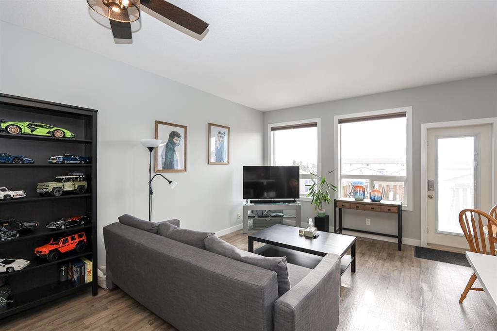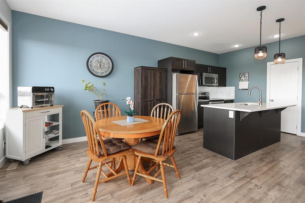 FULLY DEVELOPED 3 BEDROOM + DEN, 2 BATH BI-LEVEL ~ PIE SHAPED LOT W/ SOUTH FACING BACKYARD ~ 28\' X 24\' DETACHED GARAGE ~ Covered front entry welcomes you and leads to a spacious foyer with high ceilings that open to the main level ~ The main living space features an open concept plan complemented by 9\' ceilings and large windows that overlook the backyard and allow for natural light to fill the space ~ The kitchen offers a functional layout with plenty of dark stained cabinets, stone countertops including an island with an eating bar, full tile backsplash, stainless steel appliances and a wall pantry ~ Easily host gatherings in the dining room with garden door access to the sunny south facing deck and backyard ~ The primary bedroom can easily accommodate a king size bed plus multiple pieces of furniture, has ample closet space, and is conveniently located next to the 4 piece main bathroom ~ The fully finished basement with 9\' ceilings and large above grade windows offers a generous size family room, 2 bedrooms (one with a walk in closet), 4 piece bathroom, laundry and tons of storage space ~ The sunny south facing backyard is fully fenced, has tons of grassy yard space and enclosed storage below the deck ~ 28\' long x 24\' wide detached garage with a 16\' x 8\' overhead door, is insulated, has built in shelving and a work bench ~ Excellent location, steps to walking trails, parks, and a brand new high school (under construction), and the Abbey Centre, with all other amenities close by ~ MOVE IN READY!