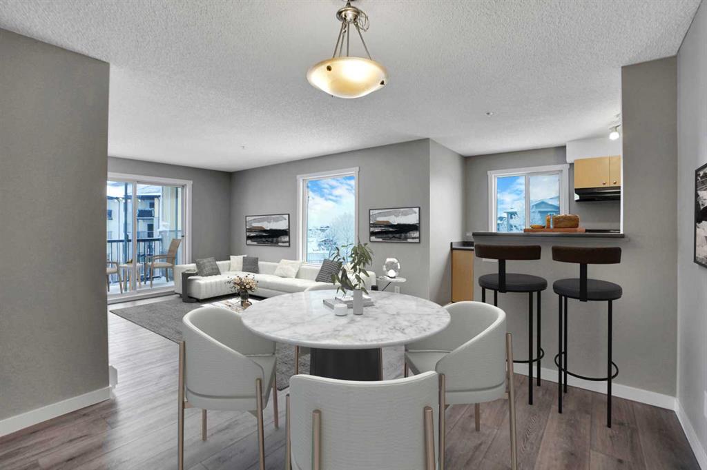 Ever dream of living in a renovated (new vinyl plank flooring, freshly painted, new baseboards & trim) 2 bedroom CORNER unit condo, with underground parking, in-suite laundry and still be able to afford it? WELCOME HOME. The heart of the home, is the kitchen, where you\'ll enjoy your easy-to-clean glass top stove, newer stainless steel fridge, and enjoy the openness that the breakfast bar allows, and the extra sitting of a full size table, you can sit ALL of your guests. Let the party spill from the kitchen, to the adjacent living room, and even to the large balcony. All of these areas are sundrenched thanks to the SOUTHWEST corner exposure. All the flooring (except tile) has just been replaced with luxury vinyl plank (incredible durable/tough, exceptional looks), the unit has been completed repainted, and new baseboards to fully update. Comes complete with it\'s own laundry. The condo fees include EVERYTHING, water, heat, and even ELECTRICITY making your budgeting easy. Take the convenient stairs to your underground parking or the elevator. Sobey\'s, is ~1000 feet away, and the even close Creekside Village offers a variety of service (coffee, dental, chiro, etc). Nose Creek meanders near and offers amazing outdoor enjoyment. From the great price, to the amazing renovations, to the convenience, to the parks, and underground parking, this unit is sure to please. Call today for your private showing.