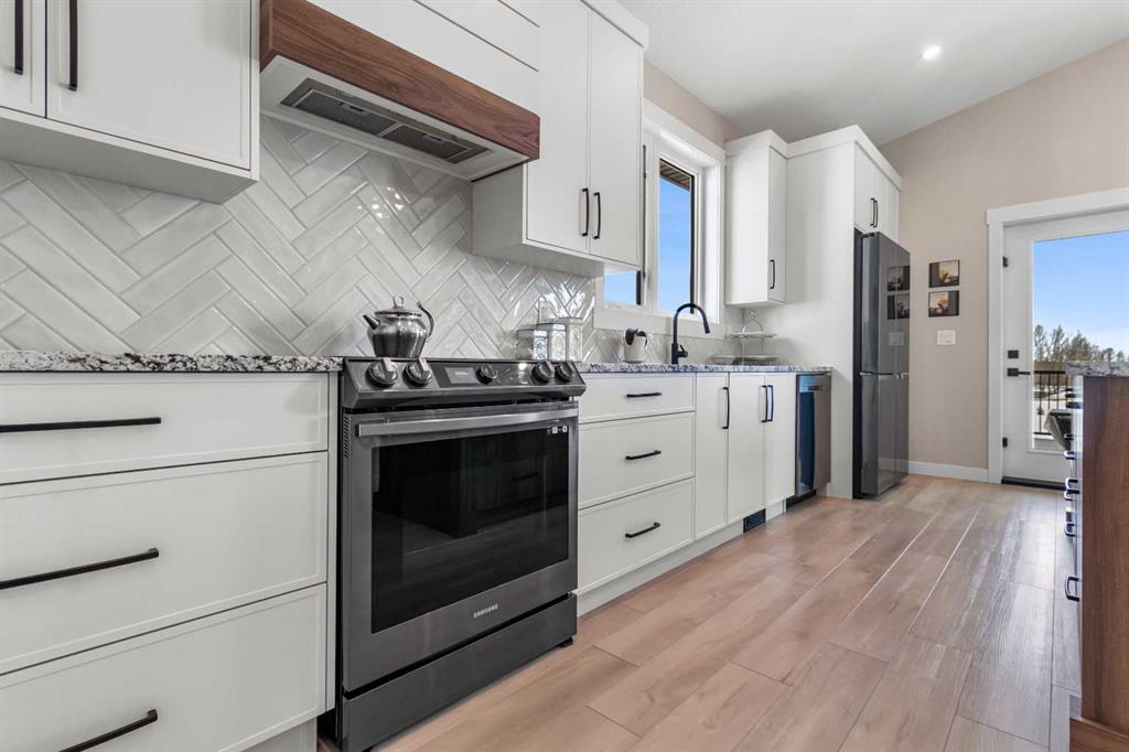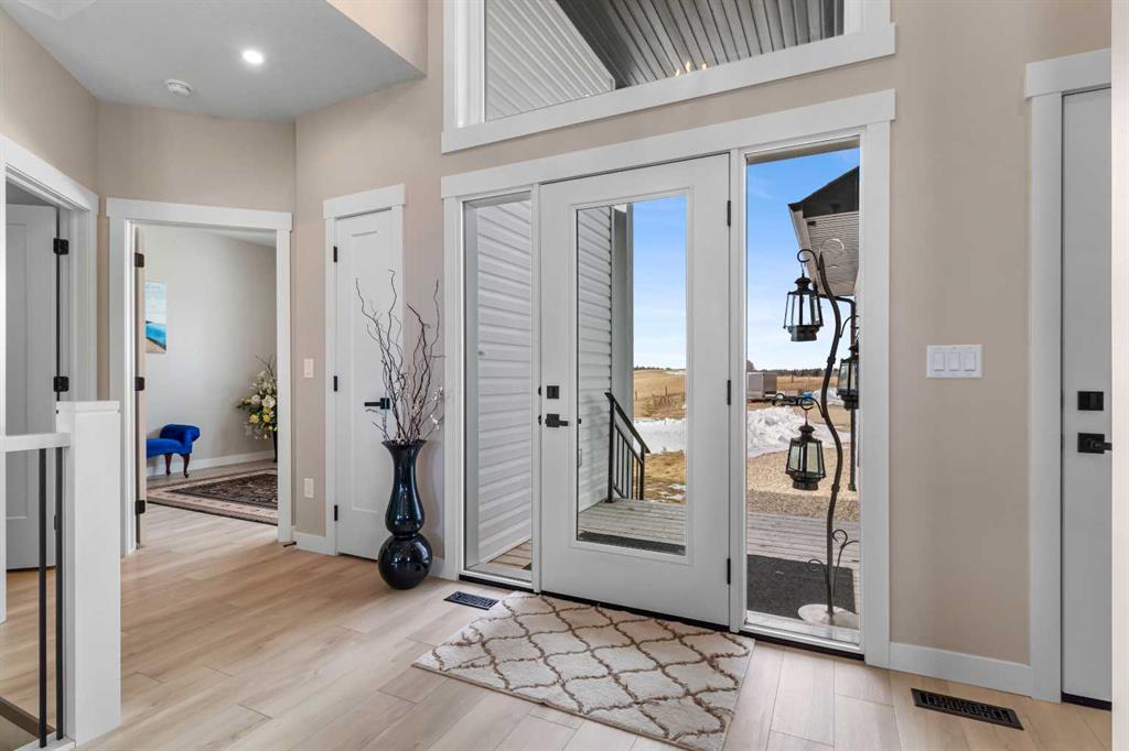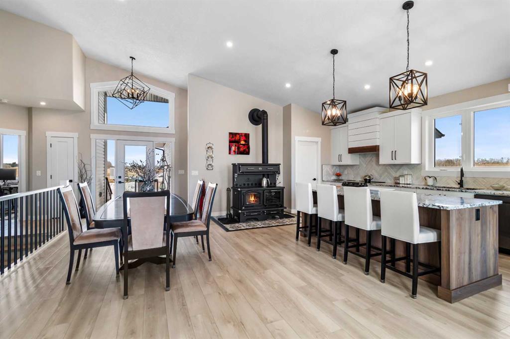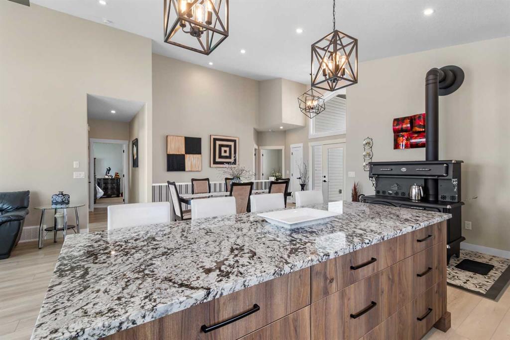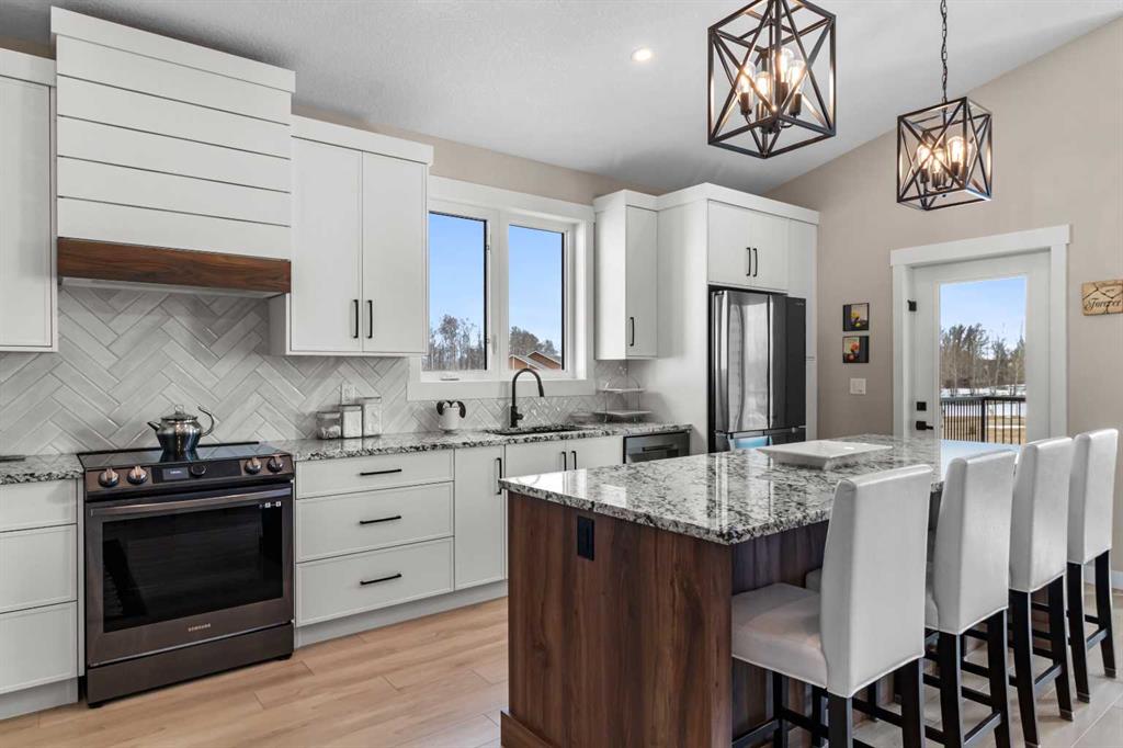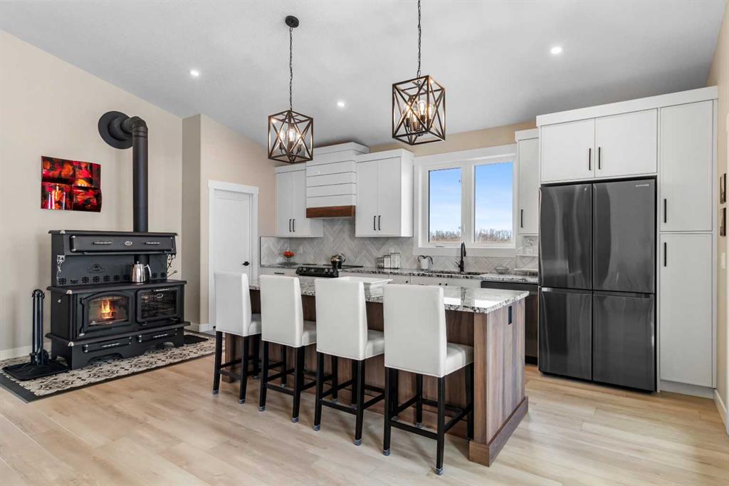 Experience perfect the blend of peaceful country living on this exceptional acreage with pavement right to the property. Centrally located less than 30 minutes drive to Red Deer, less than 20 minutes drive to Sylvan Lake and within 15 minutes drive to Gleniffer Lake for swimming, fishing, and boating . This like new bungalow with a oversized triple car garage fully finished with infloor heating, upgraded oversized garage doors. The home offers a open concept layout with a massive vaulted ceiling modern slim shaker custom kitchen cabinets and a oversized island with beautiful upgraded granite counter-tops, herringbone tile back splash and under mounted sink, oversized walk in pantry used for your additional counter top appliances and storage. Beautiful wood cook stove for cold winter days. Warm natural wall colours and upgraded vinyl flooring and finishing throughout, tons of closet space with upgraded built in shelves. The main floor also offers three bedrooms including a master bedroom, walk in closet and en-suite with a stand up shower, glass door and wall tile, large vanity with granite counter top and under mounted sink and linen closet for additional storage. The home offers upgraded oversized triple-pane windows with beautiful views of gentle rolling hills. Massive oversized deck with vinyl decking and aluminium railing facing south west. The basement includes an additional bedroom that requires flooring for finishing, the rest of the basement is framed with large common area and another oversized bedroom, bathroom with tub, laundry room, cool storage, and mechanical room. The basement requires a few final touches regarding rough in\'s to have the basement ready for drywall. This home sits on this AG zone property with oversized septic field with tie in and a potential to build a large shop, or secondary home, or potentially operate a small business on the property tons of parking for toys or equipment. The property also includes a number of garden beds, green house with a number of raised beds for growing, chicken coup fully completed with run.