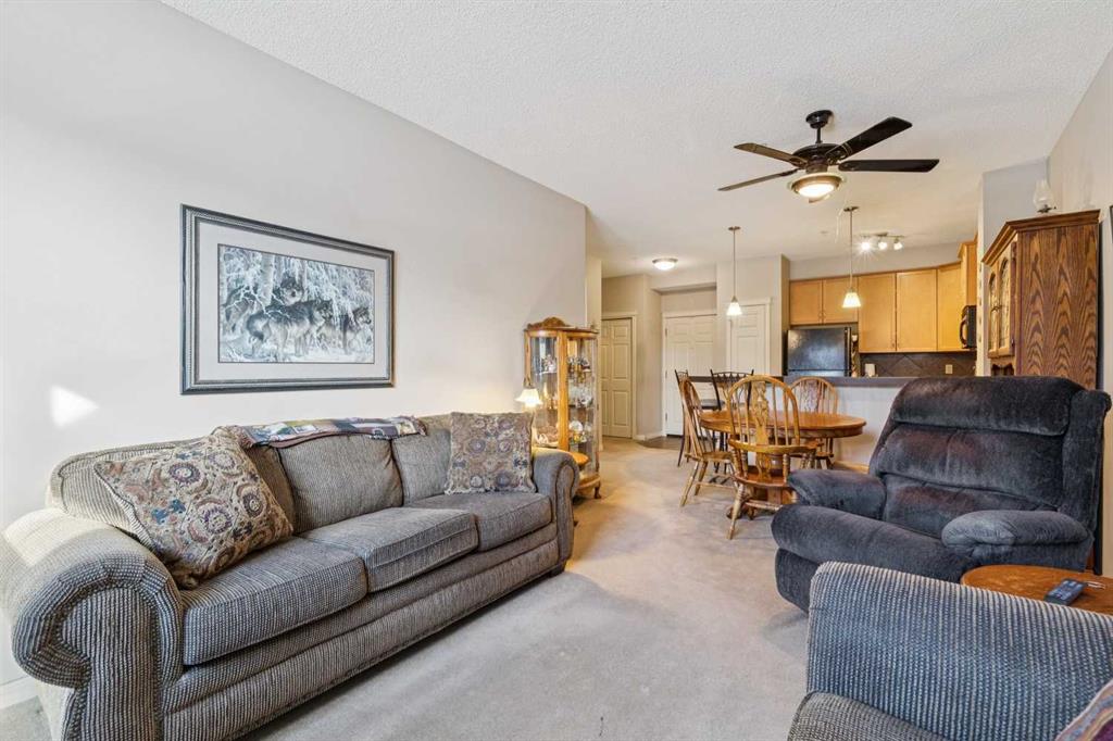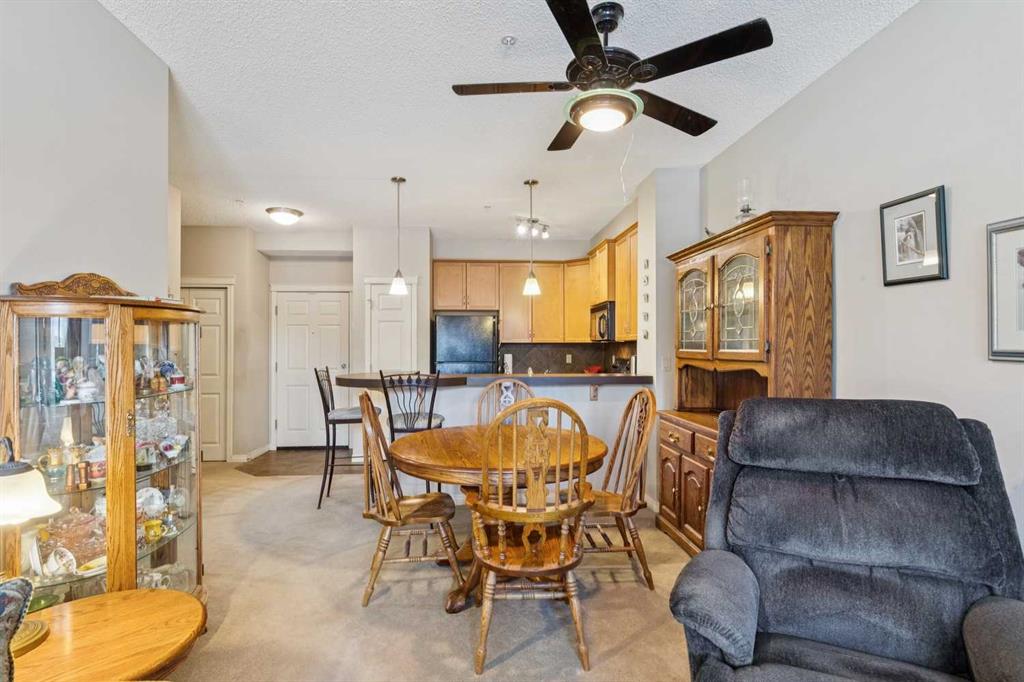Step into this open-concept main floor unit, where functional design meets everyday comfort. Beginning with the stylish kitchen, you will find maple cabinetry, a diamond-pattern backsplash, black and stainless steel appliances, and a breakfast bar create a space that is both practical and inviting, with plenty of room for casual meals or morning coffee. From here, the layout opens seamlessly into the dining and living areas, offering an easy flow that extends out to a main floor patio, creating a lovely outdoor retreat for fresh air, a quiet morning start, or unwinding at the end of the day. The primary bedroom is comfortably sized and well positioned for privacy, while the second bedroom offers flexibility for guests, a home office, or additional living space as needed. Both bedrooms share a full 4-piece bathroom. Set in the established community of McKenzie Towne, this condo enjoys access to an abundance of nearby amenities. Parks, pathways, playgrounds, splash park, schools, and green spaces are all close at hand, along with the shops, restaurants, and everyday conveniences that make this southeast Calgary neighbourhood so well loved. With easy access to major routes and a strong sense of community, this is a home that offers both comfort and connection.