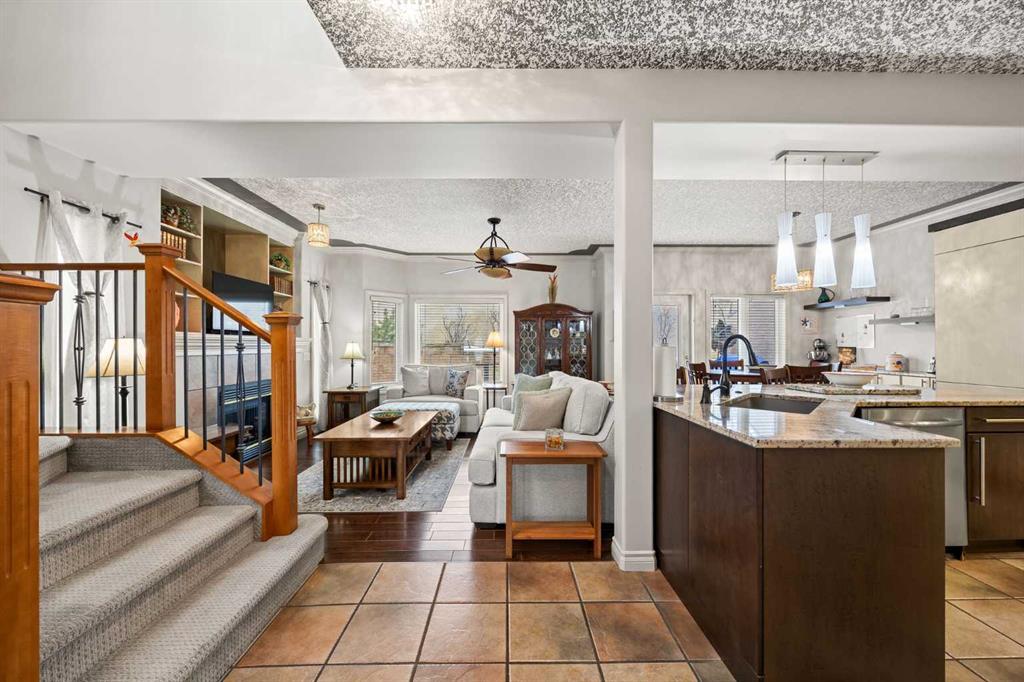 Set within Signal Hill Estates, this beautifully updated executive-style home blends comfort, quality, and thoughtful upgrades throughout. With extensive improvements already completed, this is a residence you can move into and enjoy from day one. The main floor offers an open and inviting layout designed for both everyday living and entertaining. Tiled flooring runs through the entry, kitchen, and dining areas, while warm hardwood anchors the living room, where a gas fireplace creates a welcoming focal point.