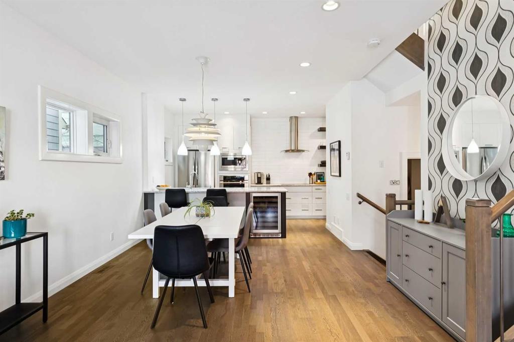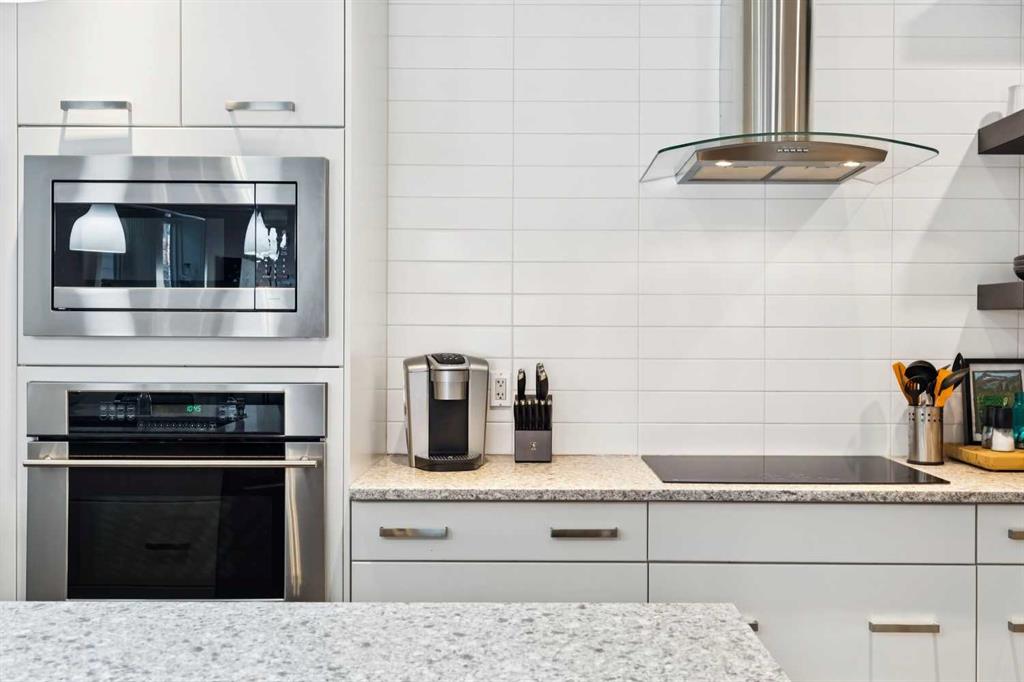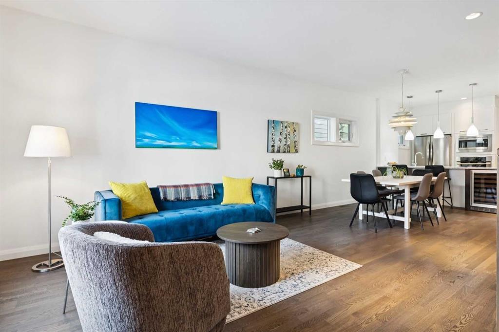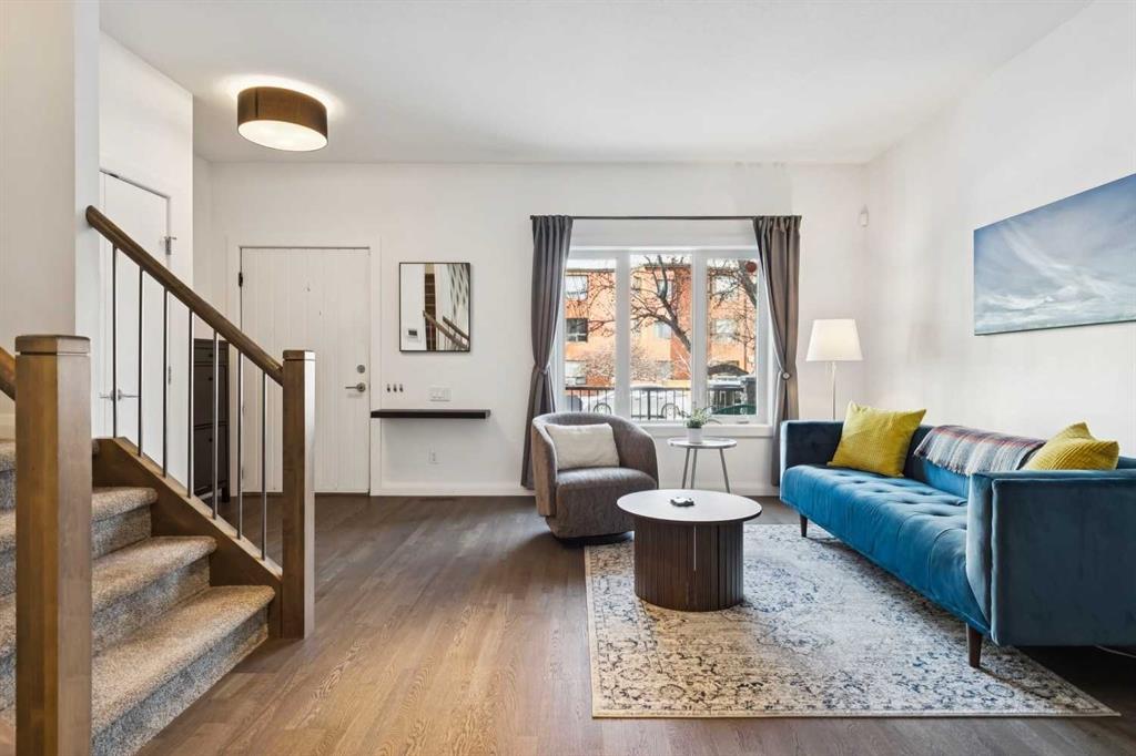 Looking to enter West Hillhurst, but don\'t want to sacrifice space or quality? Welcome to #1, 2421 2 Avenue NW: a beautiful FRONT-FACING 3-storey townhouse in sought-after West Hillhurst offering over 2,500 sqft of total living space, including a fully developed basement. The home sits at the front of the complex with a welcoming front deck and aggregate concrete exterior, and includes one stall in the detached garage off the back lane along with a visitor parking pad. The main floor features 9-foot ceilings, an extra-wide front door, hardwood flooring, and an open-concept living room, dining area, and kitchen, plus a convenient half bathroom with quartz countertops and tile floors. The kitchen includes stainless steel appliances, an in-wall oven, an induction stovetop with range hood, quartz countertops, pantry storage, a bar fridge, and a microwave replaced in 2023. Soundproofing between units is exellent, and solid doors are installed throughout the home. On the second floor, you will find 2 carpeted bedrooms, laundry, and a full bathroom with quartz countertops, tile floors, and a tiled tub/shower combination. The primary bedroom also includes a large private ensuite with dual sinks, quartz countertops, a tiled shower, and a large soaker tub. The incredible top floor is a bright and versatile space with vaulted ceilings, skylights, a ceiling fan, and a Juliet balcony, making it ideal for a bedroom, office, workout space, playroom, or media room. The developed basement offers new carpet, a large rec room with wet bar, a spacious bedroom, and a full bathroom with quartz countertops, tile floors, and a tiled tub/shower combination, along with the boiler system. Carpet throughout the top two floors and basement was replaced in 2022, and shingles were replaced in 2023. Maintenance fees are a low $418 per month and include reserve fund contributions, snow removal, annual exterior window cleaning, exterior insurance, and electricity for the garage. Located in the highly desirable community of West Hillhurst, this home is within walking distance to the amazing Bow River pathway system, close to a grocery store, and near several schools and local amenities, with quick access to downtown and Kensington. Book your showing before it\'s too late!
