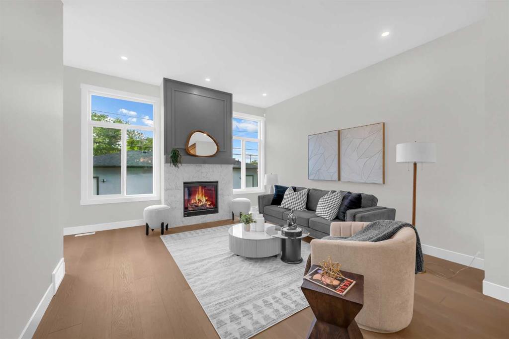 Calling all Investors! Looking for a brand new SXS Duplex with legal basement suites? This 8114 unit can be sold together with attached 8112 to provide an excellent cash flowing opportunity with the convenience of having all construction materials and components still under New Home Warranty. Both 8114 and 8112 are rented on long term leases with tenants who would prefer to stay. This unit rents monthly at $3100 for the upper suite + 70% utlitles and $1250 + 30% utilities for the lower suite. Amazing home boasting elevated design and incredible functionality, featuring a legal 2-bedroom basement suite and a sunny south exposed front with expansive valley views from the upper floor. Every detail was thoughtfully selected, from the wide-plank modern floors to the curated lighting and premium finishes throughout. Step inside to a bright, open-concept main floor with 10\' ceilings, oversized windows and neutral tones that create an airy, inviting vibe. The large, well-lit dining room is perfect for bigger families and/or hosting guests and shows off a vibrant and colourful feature wall, which flows seamlessly into a designer kitchen featuring modern warm toned cabinetry, paired with beautifully coloured glass backsplash, quartz countertops, matte black hardware, a huge walk-in pantry with built-in shelving, and a perfect-sized center island with bar seating with more natural wood tones, bringing everything together beautifully. The upgraded stainless steel appliance package includes an oversized sub zero fridge with french doors, a gas cooktop with stylish hood fan, and a thoughtfully placed wall oven and microwave. The rear living room is wide and spacious featuring additional large windows plus a cozy gas fireplace with stone surround and custom mantle, and which leads you out to the large backyard, which features an oversized concrete pad, perfect for end of the day BBQ\'s and lounging. An enclosed mudroom with a large closet area and a sleek powder room that comes with a raised matte black sink complete the mainfloor. Upstairs contains the three large bedrooms, all with trayed ceilings, including the primary bedroom which is a true retreat that features a large walk-in closet with several custom built-ins plus a hotel like ensuite. Enjoy heated tile flooring, dual sinks, quartz countertops, matching tile surrounds, plus a free standing soaker tub and an oversized glass shower with rain shower head and roughed-in for steam. The upper laundry room comes with a sink, quartz countertops, additional wood toned cabinetry, and is situated beside the stylish full bathroom which features a tiled tub/shower combo. Downstairs features the thoughtfully designed legal 2 bedroom suite and features 9\' ceilings, luxury vinyl plank flooring, wonderfully warm toned cabinetry, stainless steel appliances and lots of pot lighting. A full bathroom with elegant tile is also featured plus a dedicated laundry room, separate side entrance and storage, making this perfect for rental income.