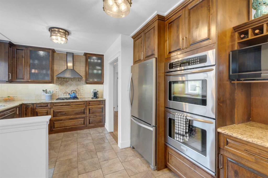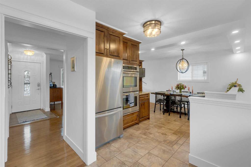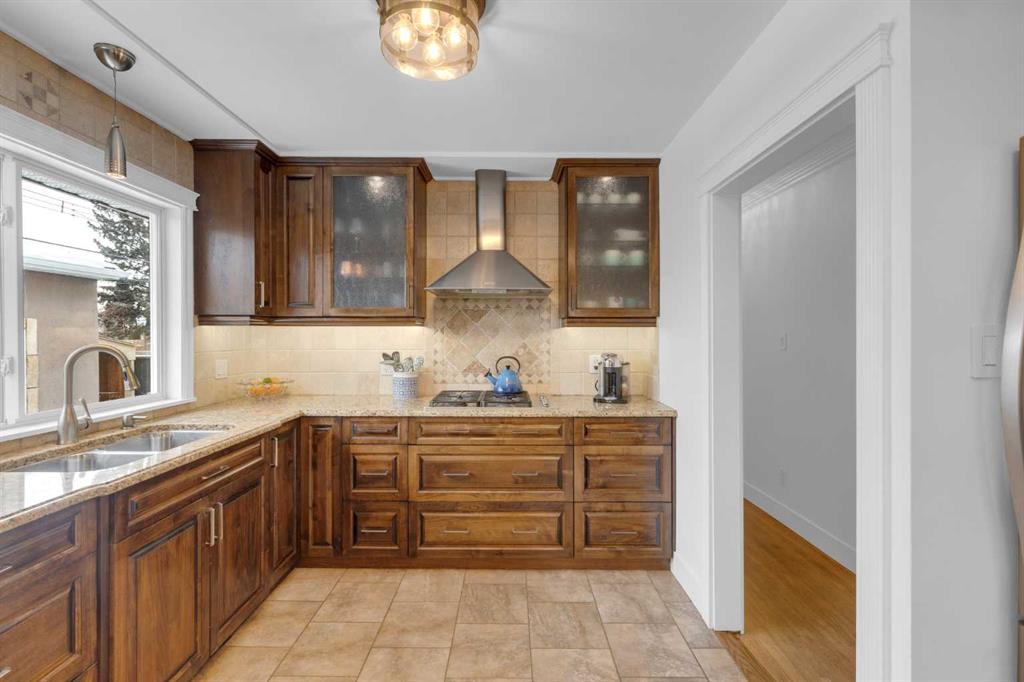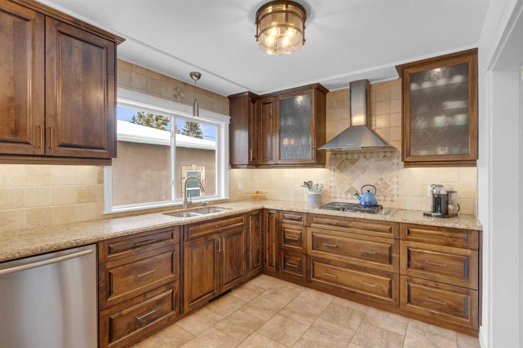 Set along a quiet street in the established community of Fairview, this beautifully maintained bungalow blends thoughtful updates, functional living space and an incredible backyard designed for year-round enjoyment. Mature surroundings and a welcoming neighbourhood atmosphere place schools, parks and everyday amenities within easy reach while offering a comfortable setting for families seeking both convenience and community. Hardwood flooring introduces the main level and extends through bright living spaces where detailed wainscotting adds timeless character. A welcoming living room invites relaxed evenings at home while the adjacent dining area sits beneath designer lighting, creating an inviting backdrop for everyday meals and special gatherings alike. Updated cabinetry, granite countertops and stainless steel appliances anchor the kitchen, where a gas cooktop and double wall ovens support effortless cooking and entertaining while generous workspace keeps everything within easy reach. Three bedrooms are thoughtfully positioned on the main floor, providing flexible space for family living, guests or a home office, while an updated 4 piece bathroom delivers everyday function with clean modern finishes. Additional living space continues in the fully finished basement where a large recreation room easily accommodates movie nights, games and casual gatherings. A fourth bedroom with egress window offers comfortable privacy for guests or older children, while a newer bathroom enhances flexibility for busy households. Outdoor living becomes a standout feature of this property where an incredible covered entertainment area forms a true backyard retreat. A built-in outdoor kitchen and fireplace create the perfect atmosphere for hosting friends through every season, while a separate ground level deck captures sunny afternoons and quiet morning coffees. Privacy and functionality are enhanced by the detached triple garage positioned at the rear of the property, offering exceptional space for vehicles, storage, hobbies or workshop use. Central air, in ground sprinkler & 4 th parking area. Fairview continues to attract families thanks to its close knit community feel and outstanding central location. Schools, off leash parks and neighbourhood pathways are within walking distance, while nearby Macleod Trail and Heritage Drive provide convenient access to shopping, restaurants and daily services. Chinook Centre, the C-Train and Deerfoot Meadows are only minutes away, making commuting and weekend errands easy while still enjoying the charm of an established residential neighbourhood.