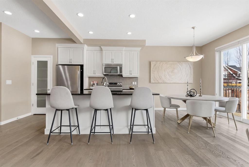 The main floor offers a spacious open-concept layout ideal for everyday living and entertaining. The functional kitchen features a large island with breakfast bar, generous pantry, and flows seamlessly into the dining area, which easily accommodates a large family table. The living room is warm and inviting with a fireplace, and you\'ll love the morning sunlight — winter or summer! Laminate flooring throughout adds durability and style, especially important with children and/or pets. Patio doors lead to a deck that\'s perfect for that early morning summer reading session or coffee and to a large, fenced backyard, providing the perfect space for children, pets, and gatherings. A convenient half bath completes the main level. The carpeted upper level offers three generously sized bedrooms, a full main bathroom, and a large bonus room—perfect for family movie nights or a kids’ play area. The huge primary suite includes a large walk-in closet and a 5-piece ensuite with a deep soaker tub. The straight staircase design makes moving furniture between levels easy and practical. The unfinished basement is a bright, blank canvas, featuring large windows and a bathroom rough-in, ready for your custom development. Car enthusiasts and hobbyists will love the attached heated 3-bay garage, with two bays side-by-side and one tandem bay—ideal for a third vehicle, seasonal storage, a workshop, or a home gym. Living in Auburn Bay means enjoying one of Calgary’s most family-friendly communities. Residents have access to the private lake with its many amenities: swimming, skating, and fishing, along with parks, playgrounds, sport courts, and scenic natural wetlands enhancing the experience of living here. Three schools are within walking distance, and you’re just minutes from shopping, dining, and recreation. This home is also close to South Health Campus, and there is easy access to major routes connecting you to downtown Calgary or weekend escapes out of the city. This is a bright, spacious, and well-cared-for home in an outstanding family community—ready for its next chapter.