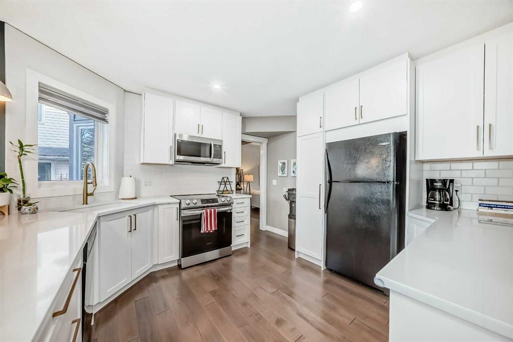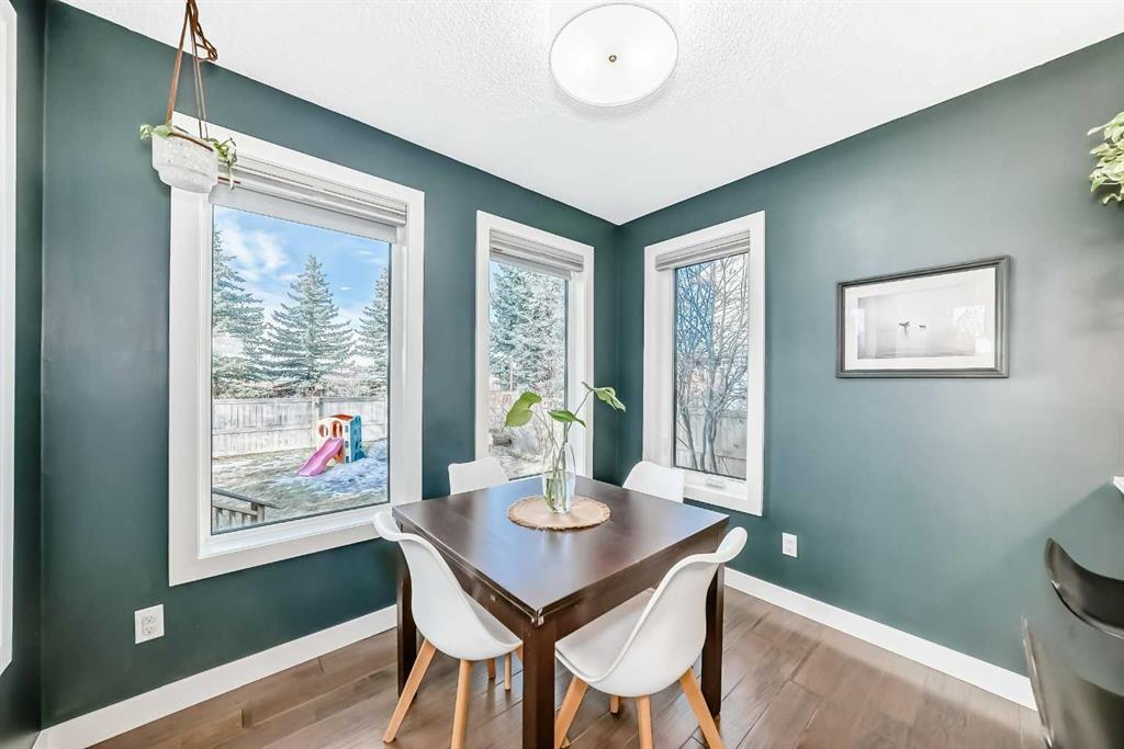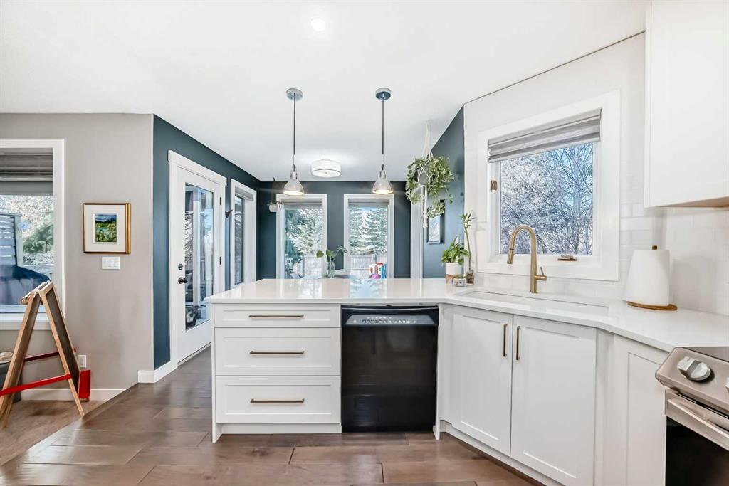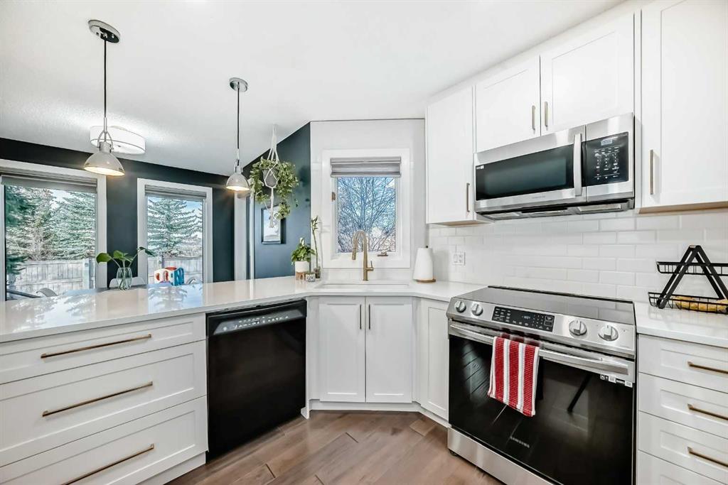 Featuring a sunny southwest facing backyard and beautiful mountain views, this updated home presents a fantastic opportunity! Many upgrades have been completed over the years including a high efficient furnace, a new hot water tank installed in 2023, many recently installed Lux windows, a new overhead garage door, and removal of the poly b plumbing which has been replaced with pex. Large windows fill the home with natural light, creating a bright and welcoming feel throughout. Gleaming hardwood floors run through much of the well designed main level which features a freshly renovated kitchen with crisp white cabinetry, stainless steel appliances, and quartz countertops. The adjoining family room boasts a cozy wood fireplace, and the spacious dining room offers the perfect setting for entertaining and hosting family dinners. The vaulted living room provides a wonderful place to relax, chat with guests, or enjoy a good book. This level is completed by convenient main floor laundry and access to the attached double garage. Upstairs you will find three generous bedrooms including a king sized primary retreat with a five piece ensuite and two closets, along with a central bonus room that enjoys mountain views and works perfectly as a home office, playroom, or flexible living space to suit your needs. The mostly unfinished lower level offers high ceilings and two new egress sized windows, presenting an excellent opportunity to add value with future development if desired. Outside you will appreciate the private backyard and large deck with a new pergola, shaded by a mature spruce tree with plenty of room to relax or play. The location is ideal with a short walk to Woodbine School (K-6) and St Jude School (K-6), nearby community parks and pathways leading to Fish Creek Park, and easy access to a variety of amenities including shopping at the new Taza and Buffalo Run shopping district. Call your favorite Realtor to schedule your private viewing!