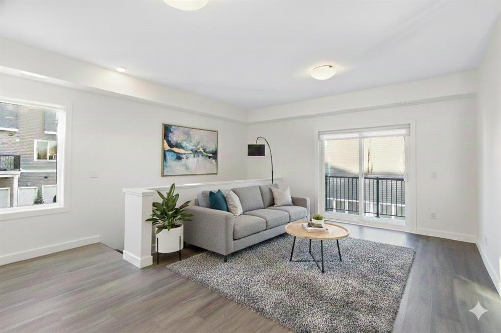 2 Bedroom 2 Bath END unit townhouse with a garage that offers the perfect blend of style and function, with most of the layout conveniently situated on a single level. Step inside and up 1 flight of stairs to the main floor and you will discover an open-concept living area with and a fully equipped kitchen boasting quartz countertops, soft-close drawers, and stylish two-tone cabinets highlighted by pendant lighting. An adjacent, flexible space is perfect for a spacious dining area or a home office. This home has two large bedrooms and two full bathrooms. The primary bedroom features a massive walk-in closet and a 4-piece ensuite. A spacious laundry room adds to the convenience. This unique floor plan is designed to feel like a modern apartment but with the added benefits of a main floor storage/flex area and direct access to an oversized, extended single-car garage.This home is perfectly situated to offer the best of both convenience and community. It\'s located right next to a future school site, with transit options directly at your doorstep for effortless commuting. Enjoy a short two-minute walk to Bow Valley High School, and a quick five-minute trip to the Spray Lakes Sports Centre for all your recreational needs. For bigger city amenities, you\'re only 20 minutes from South Calgary, and the mountains are within easy reach, with Canmore just a 40-minute drive away.