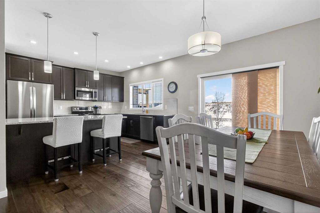 Beautiful family home BACKING ONTO GREEN SPACE with a WEST-FACING YARD in community of Reunion in Airdrie! Offering 2,181.56 sq ft above grade plus an additional 828.06 sq ft unfinished basement, allows you to develop further for your family\'s needs. The bright and open main floor features 9’ ceilings, engineered hardwood flooring, and a gourmet kitchen with granite countertops, stainless steel appliances, and ample cabinetry, perfect for the everyday chef. Large windows frame the peaceful greenspace views and fill the home with natural light. Upstairs you’ll find a spacious bonus room, ideal for a kids’ play area or quiet study space, along with a huge primary retreat featuring extended ceilings, large walk-in closet, and a spa-inspired 5 pc ensuite with dual sinks, walk-in shower, and relaxing soaker tub. Two secondary bedrooms, main 4 pc bath, and upstairs laundry complete this level. The home backs onto a peaceful walking path, green space and playground. Ideally located close to Herons Crossing School, A.E. Bowers Elementary, and W.H. Croxford High School, with shopping and amenities nearby including Coopers Town Promenade, Sierra Springs Shopping District, Save-On-Foods, Sobeys, and Walmart Supercentre. Enjoy quick access to Veterans Boulevard, Yankee Valley Boulevard, and Highway 2, making commuting to Calgary simple and convenient. This fantastic home combines location, space, and lifestyle in one of Airdrie’s most desirable communities.