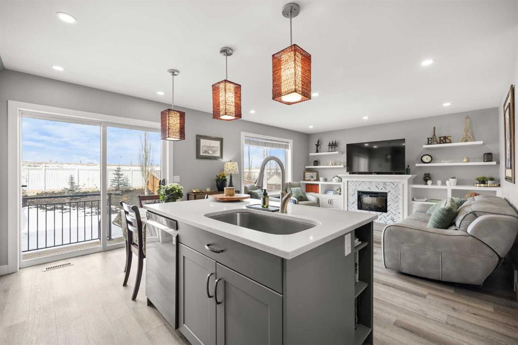 Step inside and be greeted by a soaring 2-storey foyer with durable vinyl plank flooring throughout the entire home, creating a fresh, contemporary feel. Walk into the heart of the home, where you\'ll discover a stunning open-concept living space flooded with natural light from expansive windows. The bright and spacious Living room is beautifully anchored by a stylish tiled gas fireplace with elegant built-in shelving, creating the perfect backdrop for relaxation and entertaining. The completely remodeled Kitchen showcases sleek cabinetry with a centre island featuring stunning quartz countertops and built in table for your day to day dining, designer pendant lighting, stainless steel appliances (professional series Fridge just 2 years old), and backsplash tile—a harmonious blend of form and function. Patio door to a full-width two-tiered cedar wood deck with aluminum railing, a good sized back yard that was nicely landsacped with trees —perfect for outdoor entertaining and summer meals. A Laundry room with storage space and powder room complete the main level.