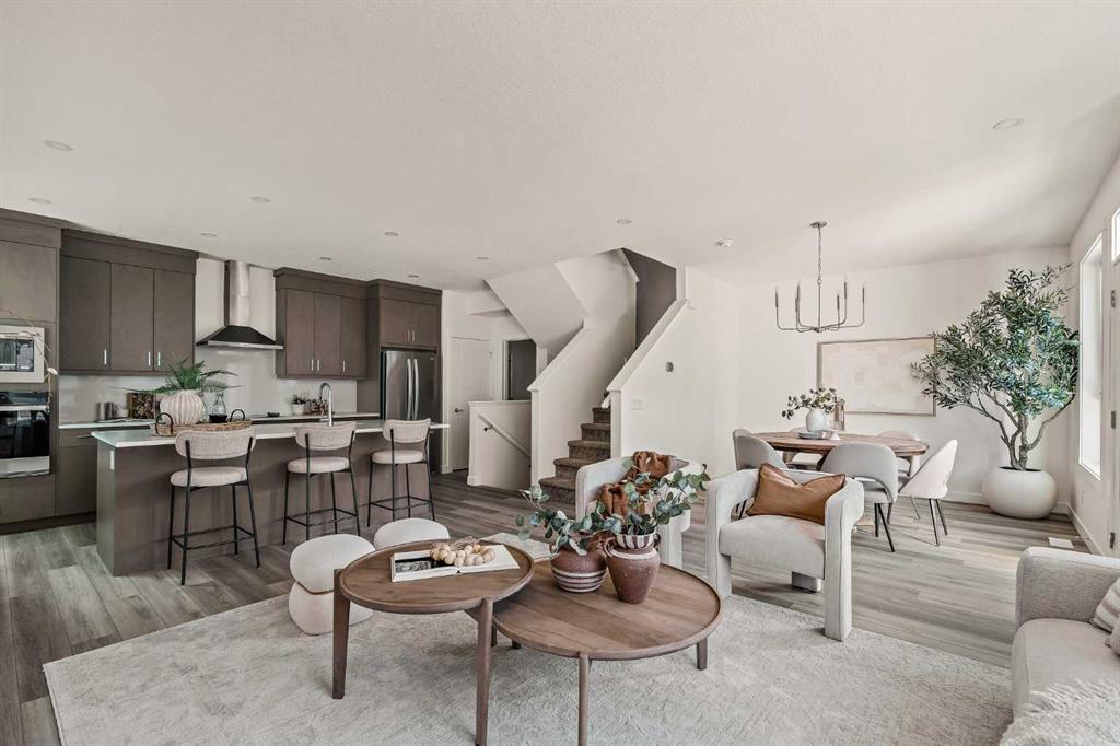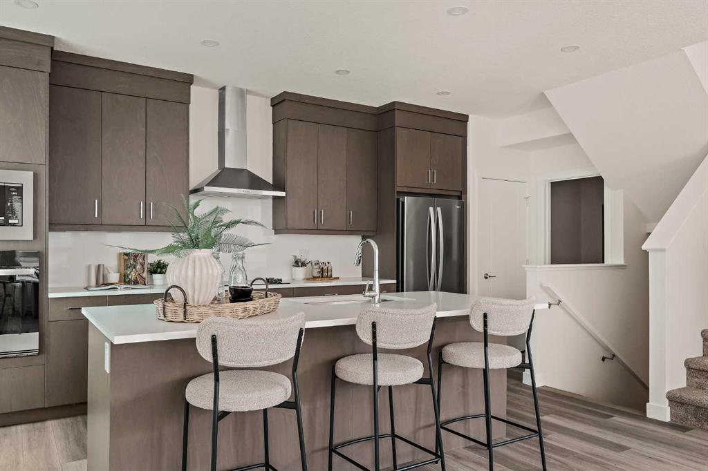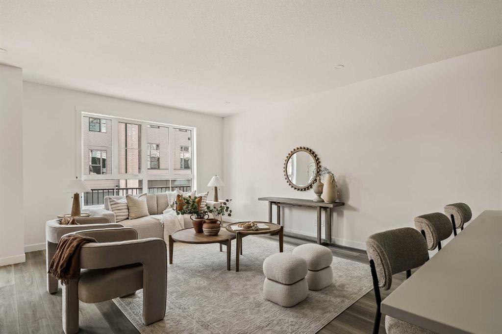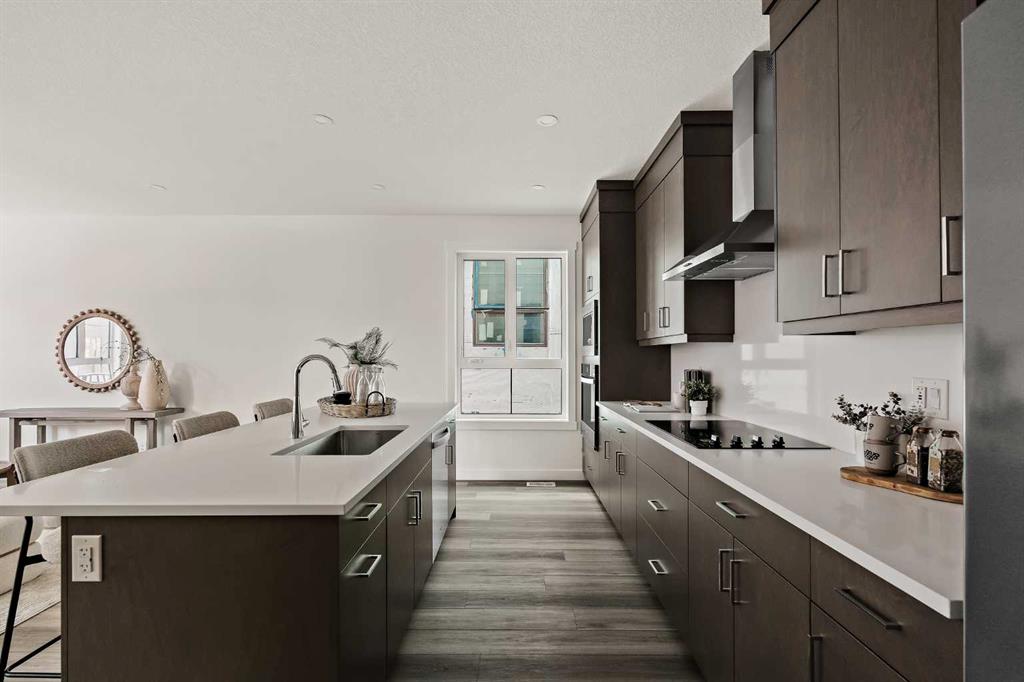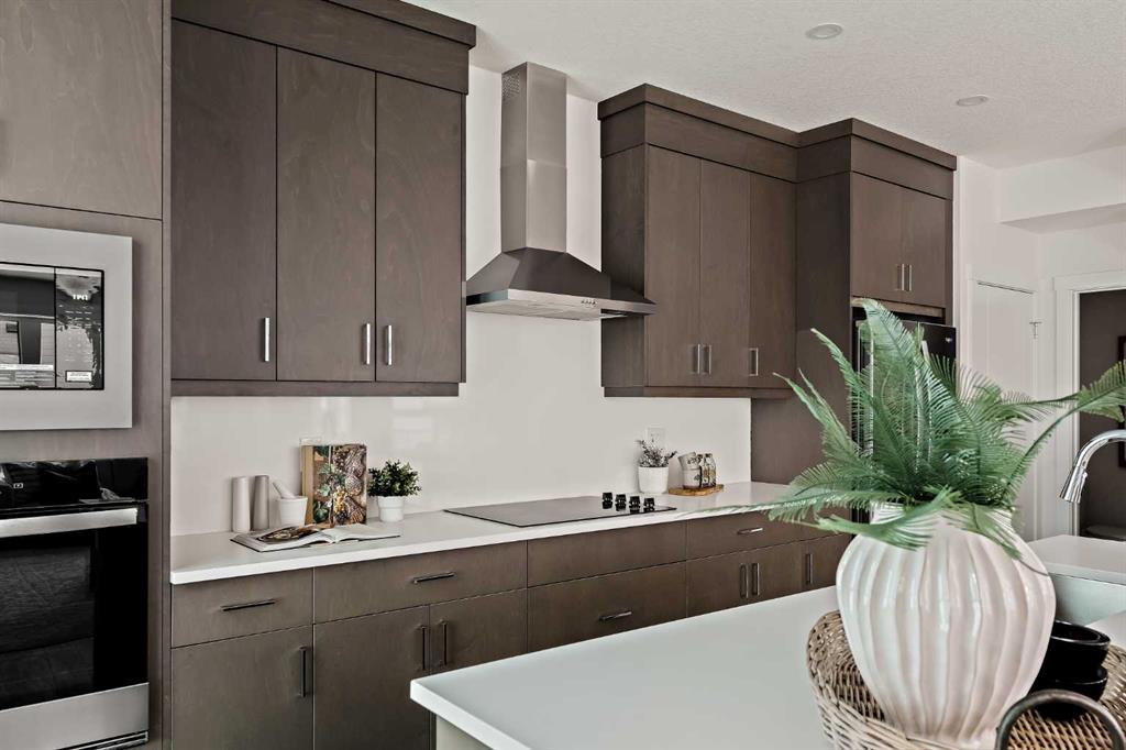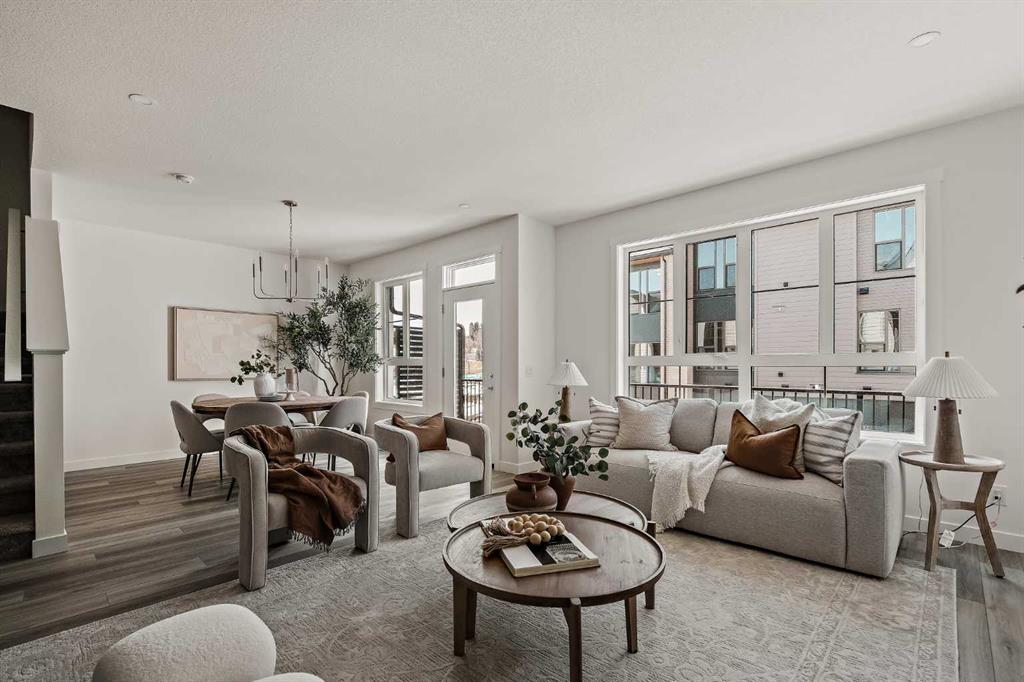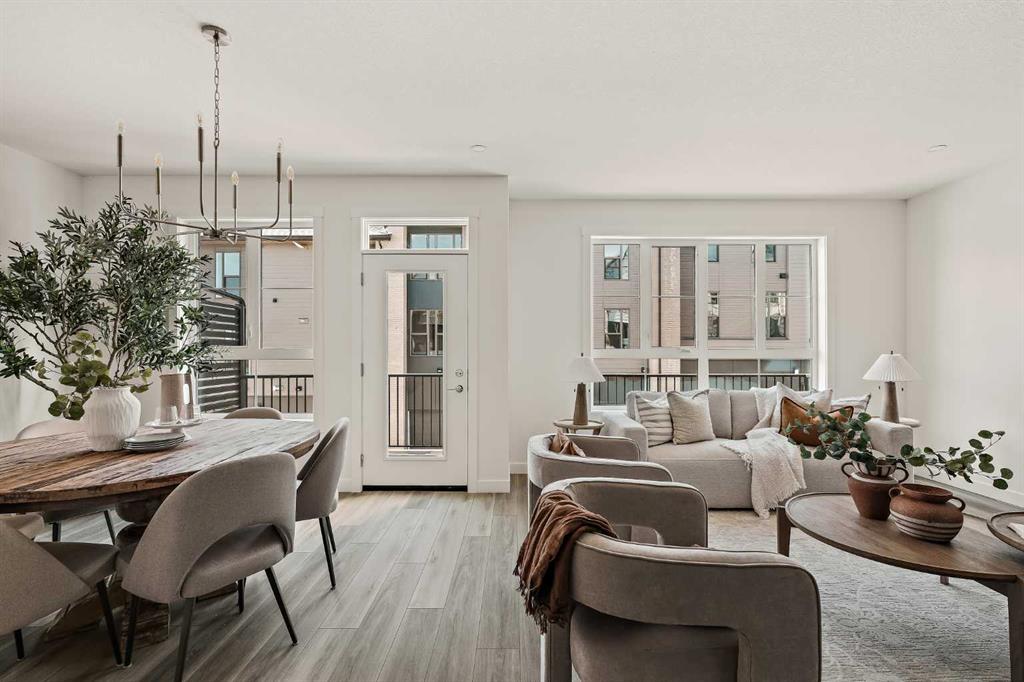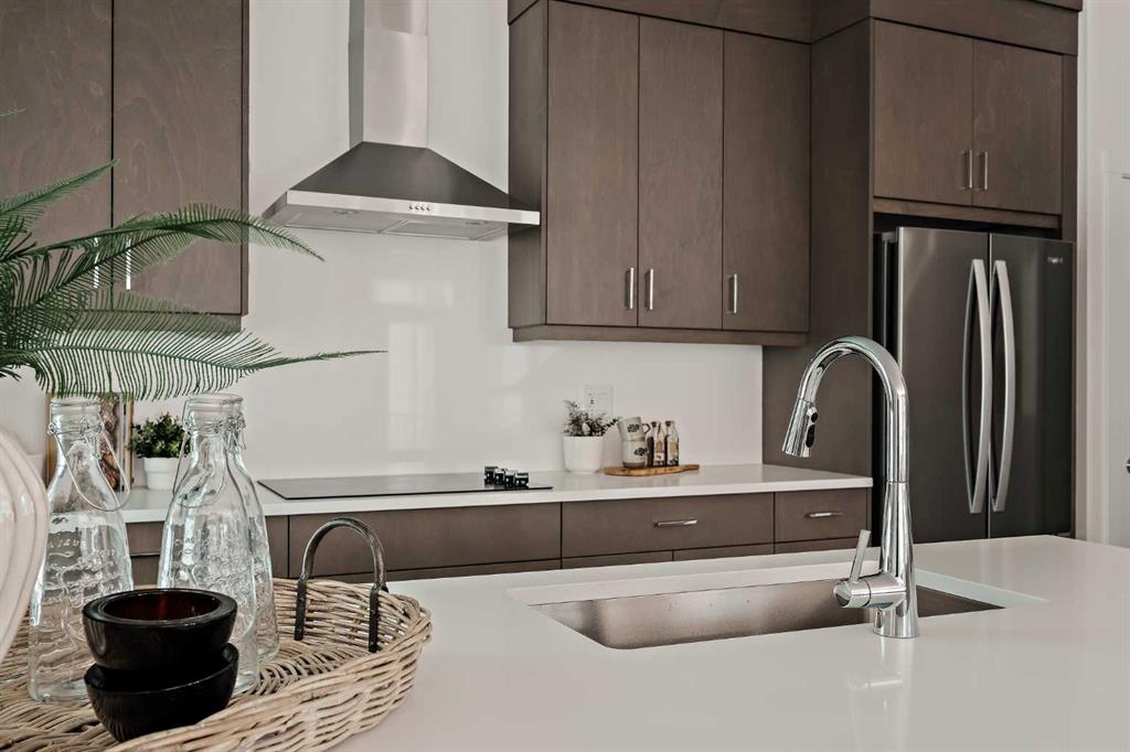 Welcome to the Torrey at Crown Park - an exceptional opportunity offering a brand-new, move-in-ready townhouse featuring 3 bedrooms, 2.5 bathrooms, and a private double-attached garage. Offering nearly 1,700 ft² of thoughtfully designed living space, this end-unit townhome is the last opportunity ready for immediate possession and it is perfectly positioned within the development. Large, southwest-facing windows provide a bright and comfortable living environment by bringing in natural light throughout the day. The bright and open main living area showcases a stunning kitchen with endless upgrades, including built-in appliances, a quartz island, and timeless cabinetry. Designed with entertaining in mind, the kitchen flows seamlessly into the expansive main living area, creating the perfect space for gatherings or everyday living. Large southwest-facing windows throughout the main level enhance the sense of space and light, creating a welcoming atmosphere year-round. The impressive great room offers ample space for virtually any furniture configuration and opens directly into the large dining area, allowing for a seamless transition between spaces. The main level is complete with a 2-piece powder room and direct access to the sprawling 26\' balcony that spans the width of the home. The outdoor living space is equipped with a BBQ gas line and hose bib, adding everyday convenience and making it easy to enjoy outdoor living. The upper level has been thoughtfully designed, with the primary suite spanning the width of the home while the secondary bedrooms and main bathroom are positioned on the opposite end for added privacy. The ~12\' x 12\' primary bedroom easily accommodates a king bedroom suite and includes a walk-in closet and private 4-piece ensuite featuring dual sinks and a walk-in tiled shower. The upper level is completed by two additional bedrooms, a full bathroom, and convenient upper-floor laundry. The flexibility of three bedrooms makes this home ideal for families, guests, or a dedicated home office, offering excellent long-term versatility and value. The entry level provides access to the private double attached garage, which includes additional space for storage along with a large dedicated storage room, keeping everything organized and secure year-round. Located in Crown Park - one of Calgary’s last remaining inner-city developments - just minutes from downtown, this home offers exceptional convenience with major transportation routes, amenities, and green spaces all close by. Perfect for first-time buyers, investors, or those seeking a lock-and-leave lifestyle with maintenance-free living, this brand new home is backed by a comprehensive builder warranty and Alberta New Home Warranty, allowing you to purchase with confidence and peace of mind.