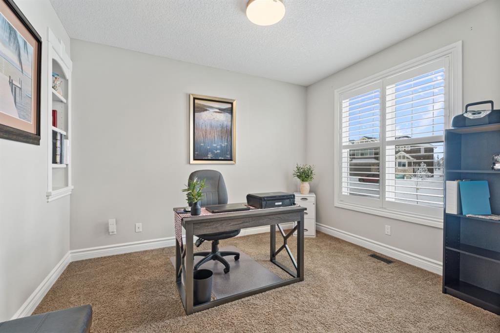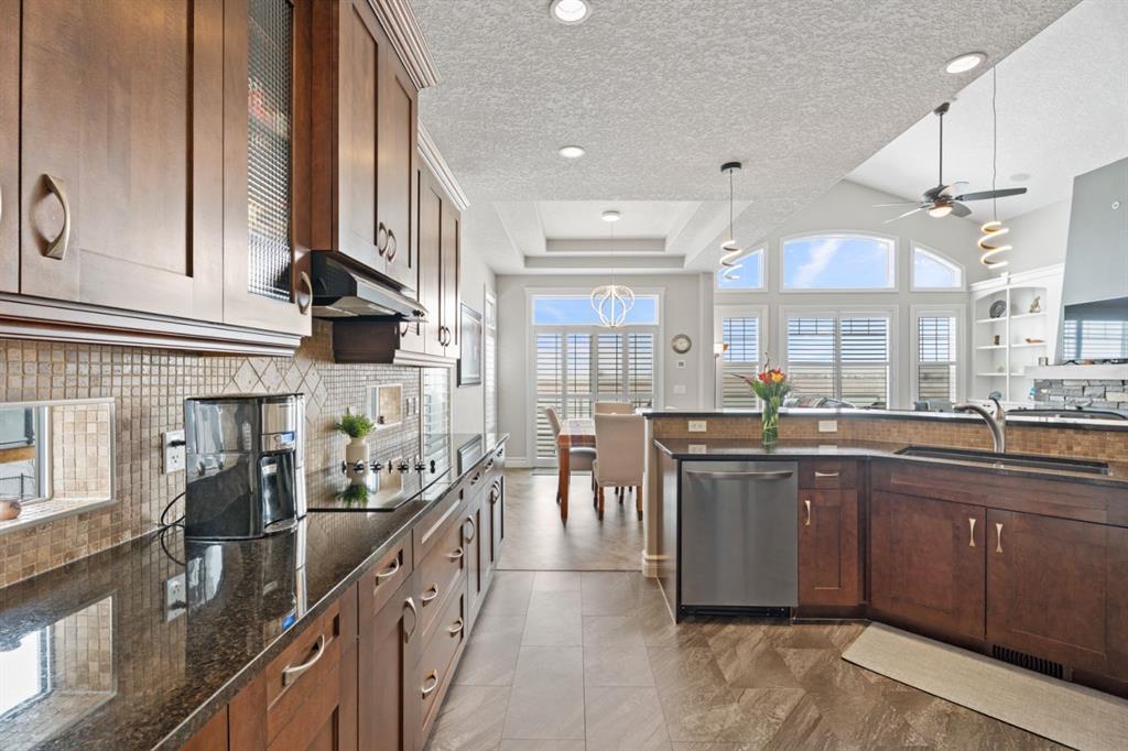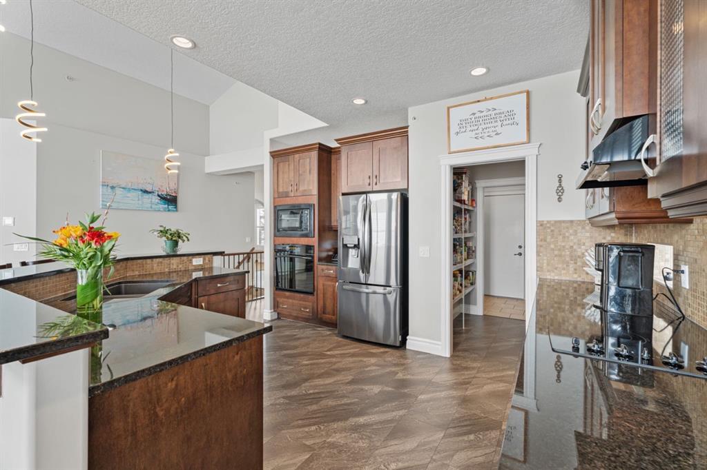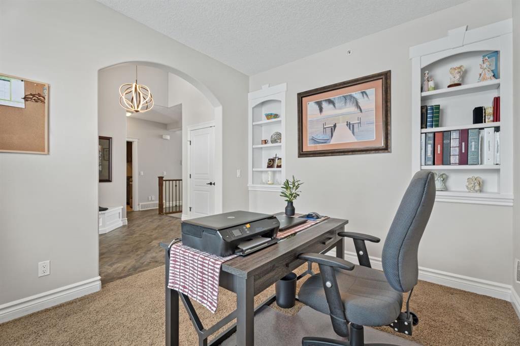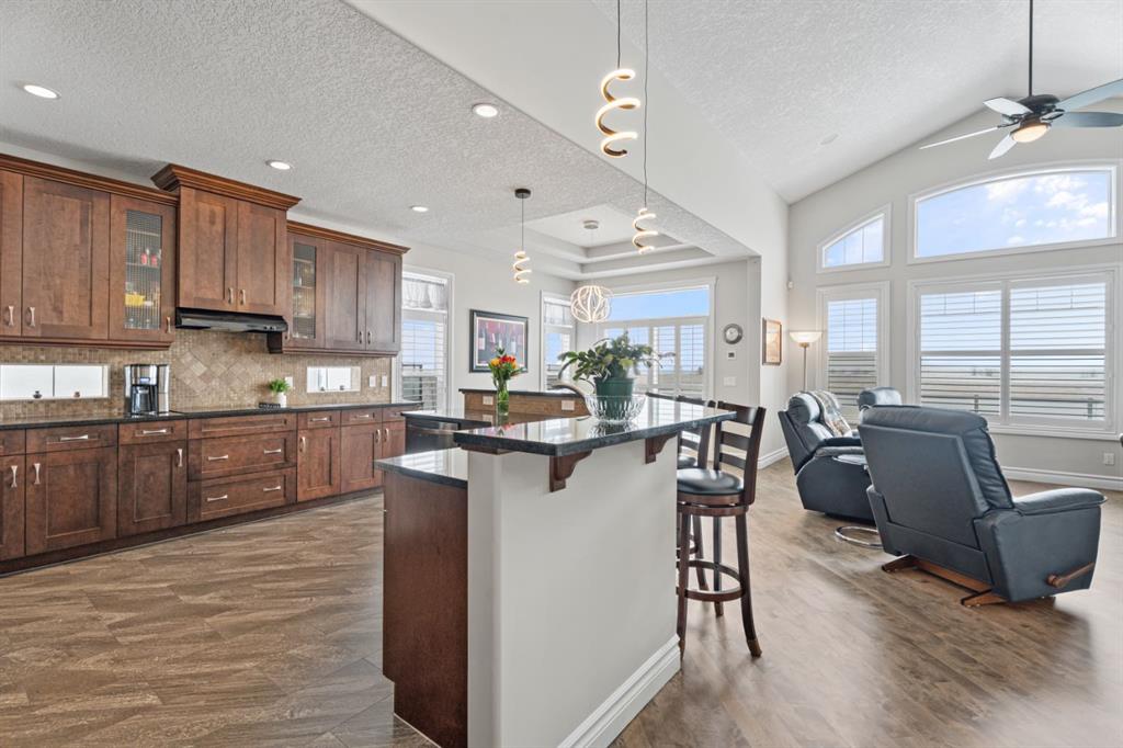 Welcome to golf course living and this beautiful well maintained walk out bungalow in the country. As you step inside, you will marvel at the large foyer and open floor plan, vaulted ceilings, refurbished hardwood floors and upgraded luxury vinyl tile in the kitchen and pantry. Take in the abundance of natural light from the large living room and pocket windows in the kitchen. This open and cozy upper main level offers so much space, including a comfortable office/den, large kitchen with granite counters and breakfast bar, walk through pantry with pocket doors and main floor laundry, extended cabinets, built in storage benches and under cabinet lighting. The feature fireplace offers warmth and ambience for those cold winter nights. Enjoy the oversized garage, extra wide driveway, work bench and tool wall for working on various projects with plenty of shelving for storage. Enjoy the pristine view of wildlife and golfers off of the large deck and invite neighbours, family and friends to join you on the aggregate patio below. The front and backyard are fully landscaped and an automatic underground sprinkler system is in place. This community is 30 minutes from Calgary, 20 minutes to Chestermere and 20 minutes from Strathmore. Enjoy time on the 18 Hole Golf Course, a secure RV Storage lot exclusive to Lakes of Muirfield Residents and the natural landscapes of country living and wildlife backing onto the canal! Book your showing today with your favourite REALTOR®.