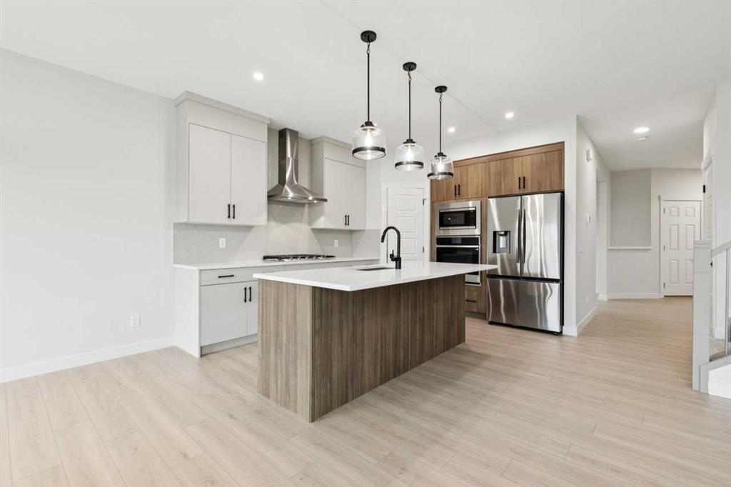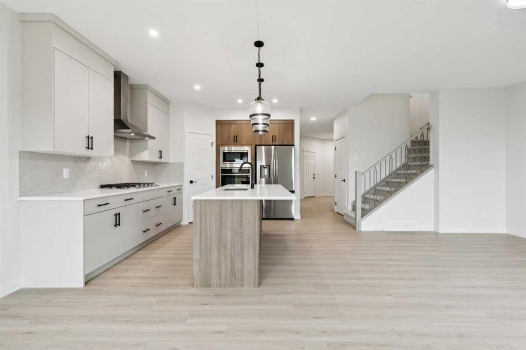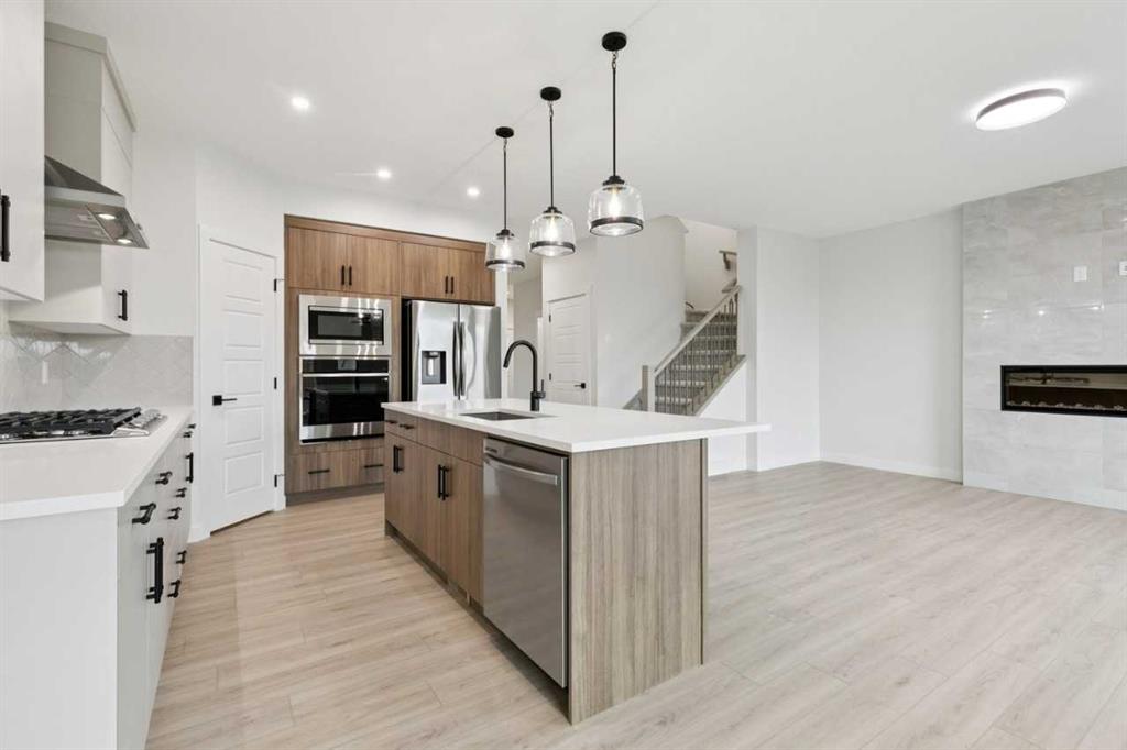 Welcome to the Madison by NuVista Homes, located at 57 Southborough Square in the growing Southbow community of Cochrane. This beautifully designed 2,040 sq. ft. two-storey home offers 3 bedrooms and 2.5 bathrooms with a spacious and functional layout. The open-concept main floor features luxury vinyl plank flooring, a modern kitchen with quartz countertops, tall upper cabinetry, and an upgraded Samsung gourmet appliance package. The bright great room is anchored by an electric fireplace with full tile surround, while a versatile flex room provides space for a home office or additional living area. Upstairs, a large bonus room, convenient laundry, and a spacious primary bedroom complete with a walk-in closet and private ensuite. Two additional bedrooms finish the upper level. Additional highlights include 9’ foundation and main floor ceilings, a side entrance for potential future basement development, and an 11’ x 10’ rear deck ideal for outdoor BBQ\'s.