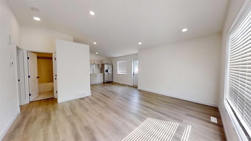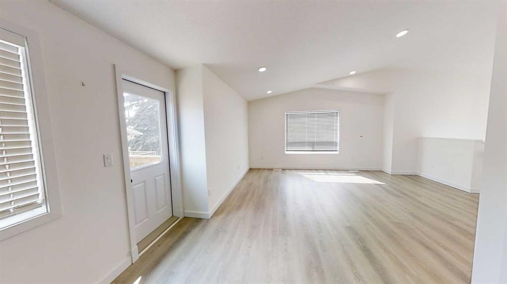 Large bright living space with vaulted ceilings upstairs. Separate dining area with access to rear deck.