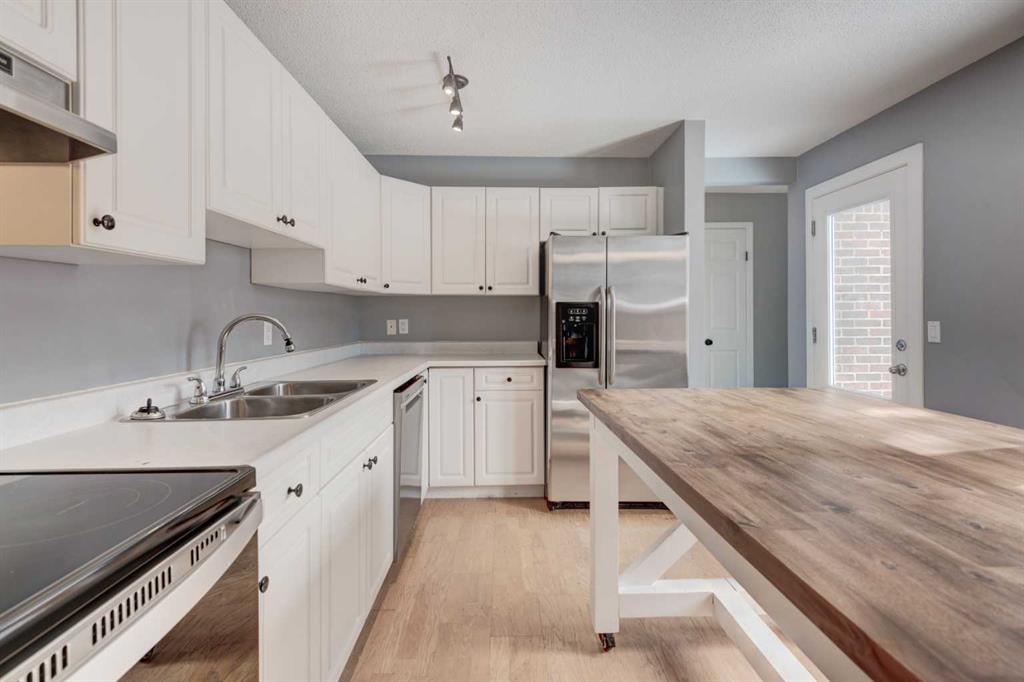 HOME SWEET HOME! Welcome to this stunning, FRESHLY UPGRADED, 2 storey END UNIT Townhouse in the heart of one of Calgary’s most desirable inner-city communities, Glenbrook, steps from grocery stores and shopping. This immaculately maintained, move-in ready home offers all the perks of maintenance free townhouse living combined with your own spacious, private backyard, perfect for pet owners (board approval for 2 pets). Heading inside you will instantly notice the hardwood flooring taking you to the bright foyer and recently updated and stylish vanity bathroom. Completing the main floor is a contemporary chef’s kitchen highlighted by a center island with an eating bar, ample gleaming white cabinet space, stainless steel appliances, and the spacious living room that is flooded in natural sunlight. Heading upstairs you will find 3 great sized bedrooms including the primary retreat with tons of space to accommodate a king bed and a freshly renovated 4 piece bathroom with a new tub and tile. Downstairs you will find the unfinished basement with your in-suite laundry, tons of storage space, room to accommodate a recreation room or yoga studio and lots of future potential. ADDITIONAL UPGRADES include a private fully fenced backyard with a newer deck, central air conditioning, a parking stall, lots of visitor parking, potential to rent additional parking stalls and a PET FRIENDLY COMPLEX that is extremely reputable and well managed with a healthy reserve fund. This is a perfect opportunity for first time buyers or downsizers close to parks, off-leash dog areas, schools, public transit, restaurants, shopping, West Hills, easy access to major roadways and to escaping the city to the mountains. MUST VIEW! Homes are rarely available in this complex so don’t miss out on this rare opportunity. Contact us today for a private viewing!