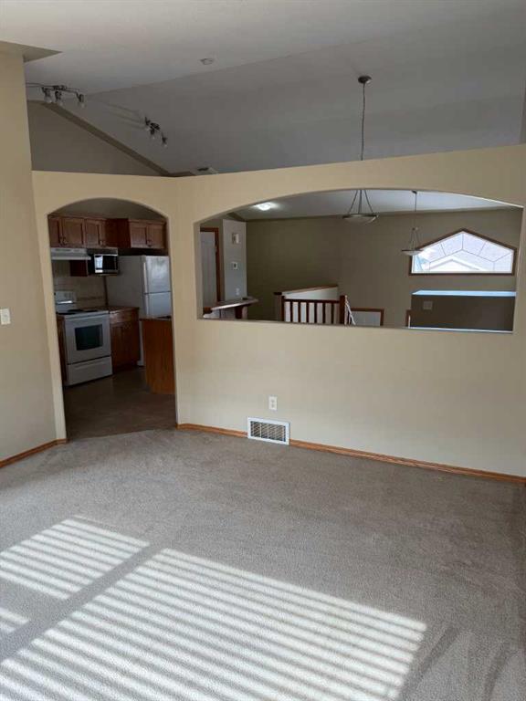 Welcome to this well-designed 3-bedroom, 1.5-bathroom half duplex offering a bright and functional layout. The main floor features beautiful vaulted ceilings that create an open, airy feel throughout the living space, while large windows allow plenty of natural light to fill the home.