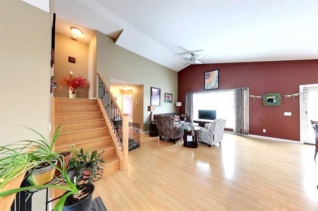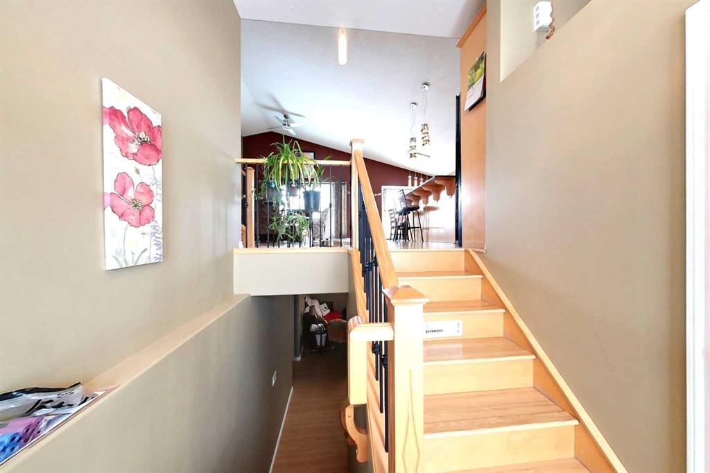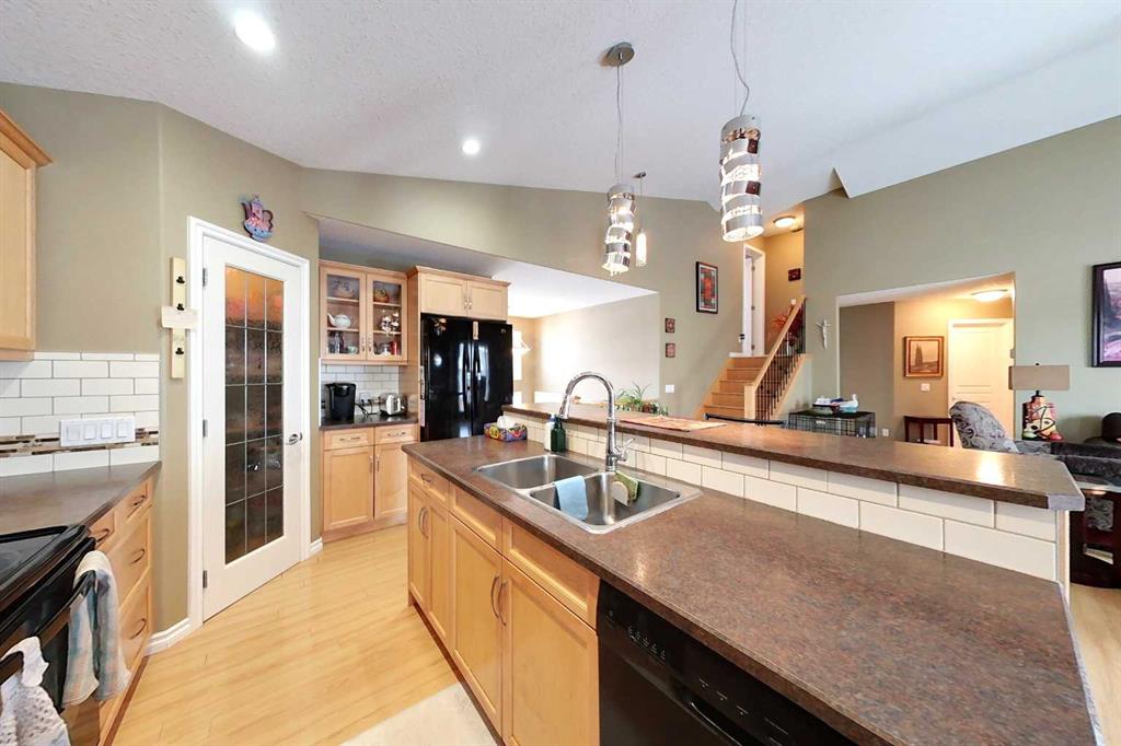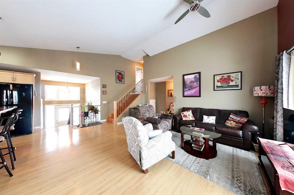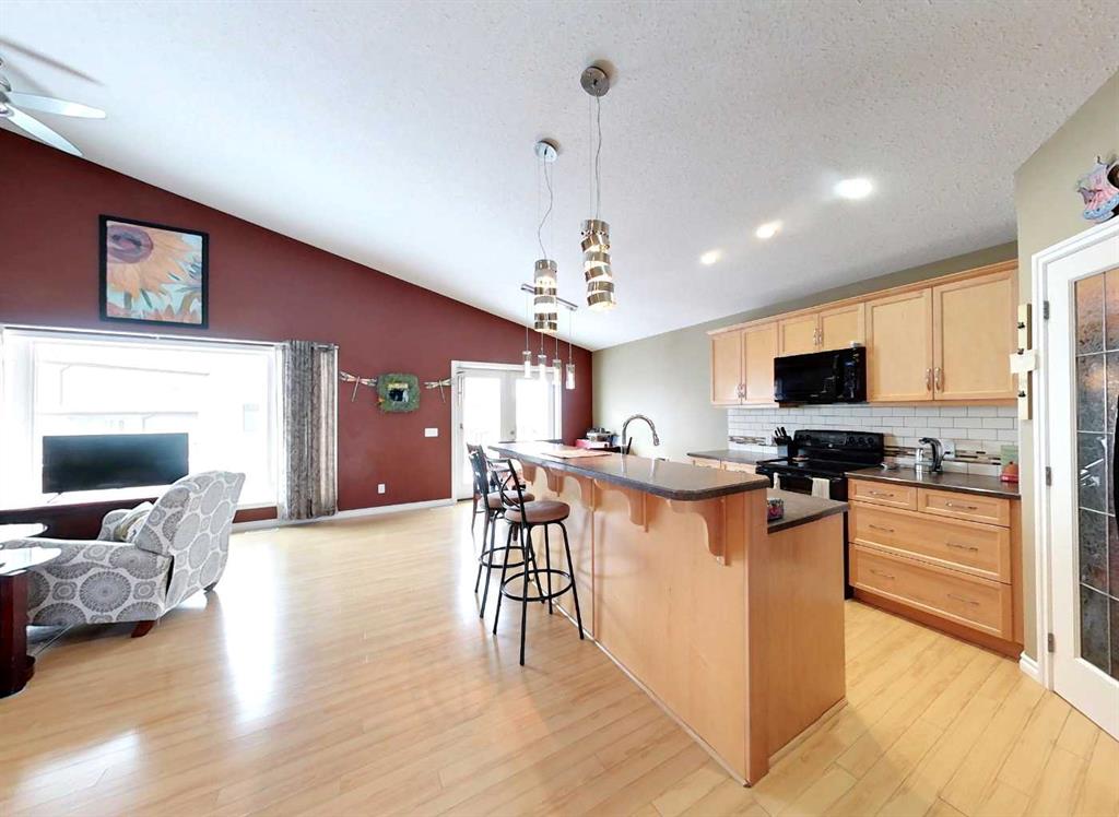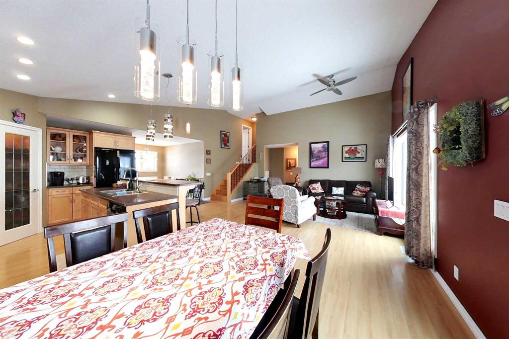 WOW is the first thing you will say as you walk through the door of this beautiful modified bi-level home. With the tall ceilings and open concept layout this home has so much room for you and your family to grow in. Tiled entrance with closet and garage access in the foyer. On the main floor you will find a beautiful kitchen with a large island, tons of cupboard space and pantry, black appliances. The vaulted ceiling on the main floor is through the dining area and good sized living room with garden doors leading out to the deck and landscaped back yard. 2 bedrooms and a 4 piece bathroom finish off the main floor. Go up the stairs to the master bedroom featuring a walk in closet and 4 pc ensuite that has the separate jetted tub and shower. Down to the basement you will find 2 more bedrooms, another 4 pc bath, office, laundry room, the utility room and a large family room complete with a wood fireplace for those cold winter nights. Attached to the home is a double garage! This well kept home has so much to offer and is ready to move in!