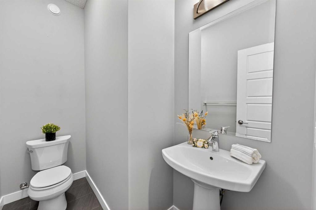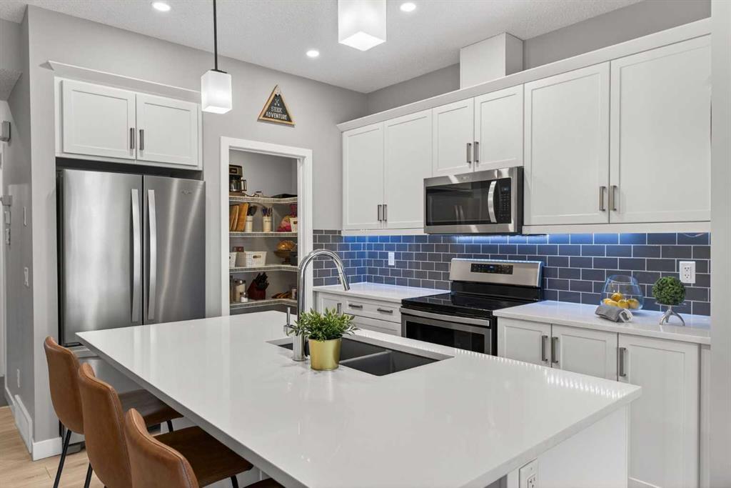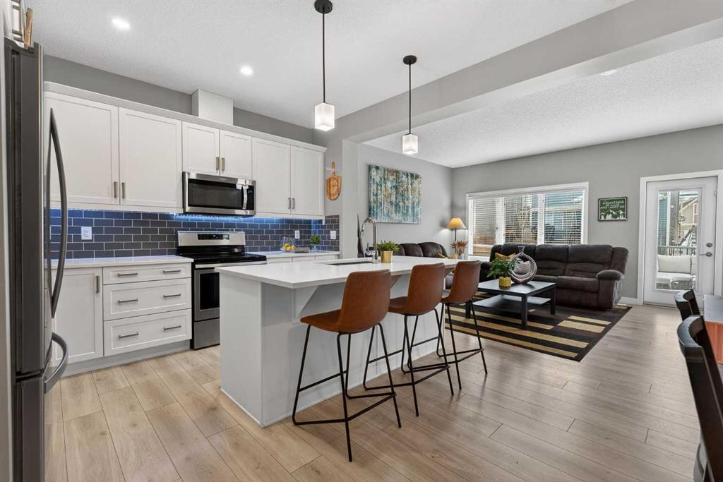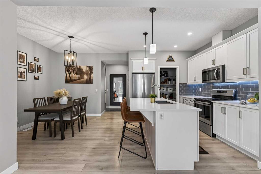 A duplex that doesn’t feel like one, thanks to a layout you don’t often find. With a bonus room upstairs and over 1,500 sqft, this one stands out right away. Built in 2018, this home offers the space, functionality, and flexibility that many buyers hope to find… but rarely do in this price range. Step inside to a bright, open-concept main floor with 9ft ceilings throughout, where the kitchen, dining, and living areas come together seamlessly, creating an amazing space to entertain and for everyone to feel connected. The kitchen is both stylish and practical, complete with quartz countertops, stainless steel appliances, an oversized central island, under-cabinet lighting, a classic subway tile backsplash, and an amazing walk-in pantry for added storage. Upstairs is where this home truly separates itself. In addition to three generously sized bedrooms, you’ll find a bonus room! A feature not often available in similar duplex layouts. Whether you need a home office, playroom, or additional lounge space, this flexible area adds real everyday value. You’ll also appreciate the convenience of side-by-side upper-floor laundry, along with a well-appointed primary bedroom featuring a large walk-in closet and its own ensuite, with a shower. The two additional bedrooms are positioned at the front of the home, providing added privacy for the primary, and are both a great size for kids, guests, or whatever suits your needs. These bedrooms share a full bathroom complete with a tub. The undeveloped basement offers excellent future potential and is already being enjoyed as a gym and hangout space. It also features hot water on demand and is roughed-in for a future bathroom, giving you the option to expand and add value over time. Outside, the low-maintenance composite deck with metal railings creates the perfect setting for summer evenings, while the fenced backyard offers just the right amount of space for kids, pets, or entertaining, without the upkeep of a larger lot. Aspen columnar trees were planted last summer and will continue to mature, offering added privacy as they fill in through the spring and summer, along with beautiful colour in the fall. The single attached garage is drywalled, insulated, and painted, and is currently set up as a functional workshop and storage space, plus there is additional driveway parking. Located within walking distance to scenic ponds and pathways, and just minutes to Deerfoot Trail for an easy commute into Calgary, this home offers a really convenient lifestyle. You’re also close to amenities like CrossIron Mills, along with a pump track over in Lanark Landing, plus all the everyday shopping, dining, and services Airdrie has to offer. With a layout that just makes sense, modern finishes throughout, and a location that offers both lifestyle and convenience, this home delivers exceptional value in today’s market.