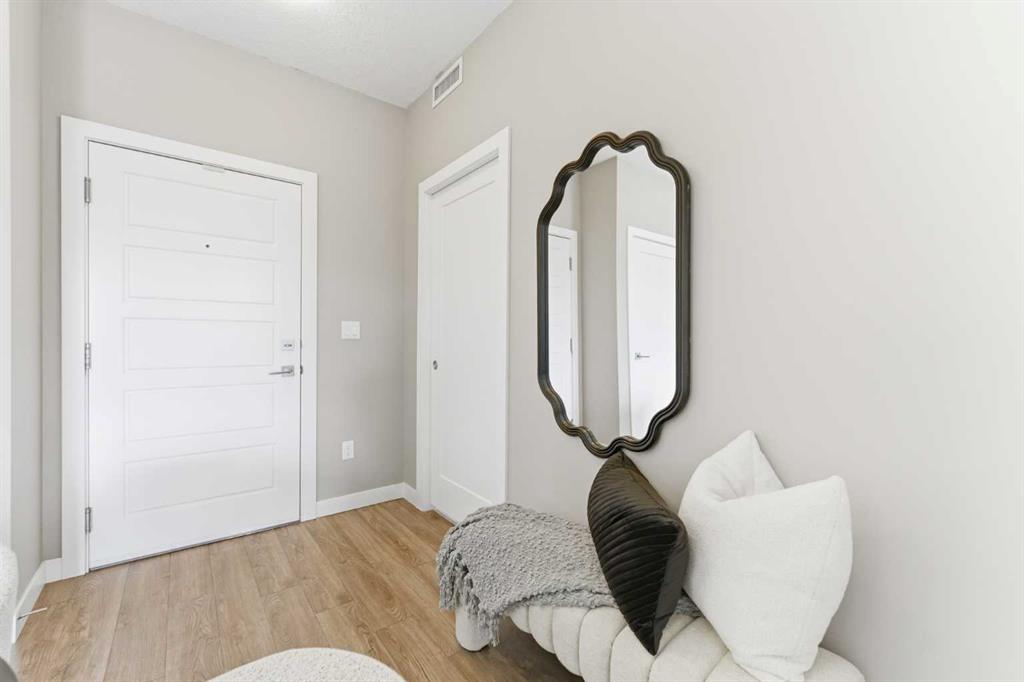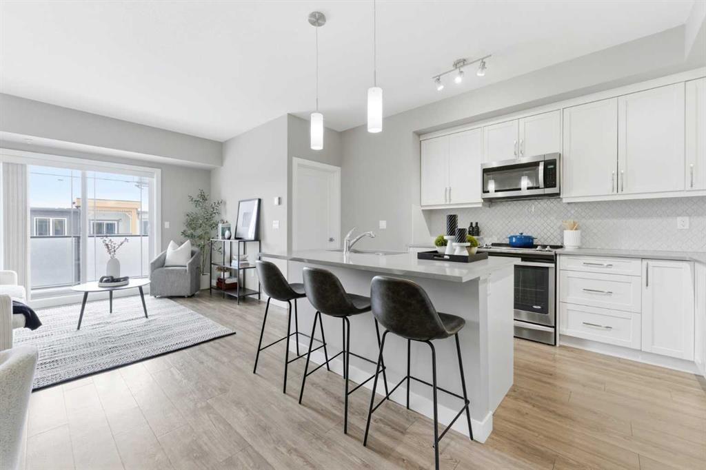 Available Immediately. TOP FLOOR 2-bedroom, 2-bathroom unit in the highly sought-after Auburn Bay Lake Community — a rare opportunity to enjoy true privacy with no neighbours above you. This bright and inviting home features a EXTRA large east-facing balcony that extends your outdoor seasons and fills the interior with morning light. From the moment you walk in, you’ll appreciate the 9 ft ceilings and abundant natural light that create a spacious, airy atmosphere. The open-concept layout easily accommodates a full dining table and is ideal for both everyday living and entertaining. The kitchen is a chef’s delight, featuring gleaming white cabinetry, stainless steel appliances, stone countertops, a designer tile backsplash, and a generous island perfect for meal prep and casual dining. The primary bedroom is a serene retreat with a walk-in closet and a well-appointed ensuite offering dual sinks and an easy-access shower — ideal for those seeking comfort and convenience while downsizing. The second bedroom is impressively large and positioned on the opposite side of the unit, providing excellent privacy for guests or family members. A full second bathroom with a bathtub and in-suite laundry add to the functionality of this well-designed floor plan. You’ll love the security and convenience of underground heated parking and an additional storage locker. The building’s contemporary architecture and clean design enhance the overall appeal. As an Auburn Bay resident, you’ll enjoy year-round lake access included through HOA fees. The lake offers swimming, fishing, paddleboarding, skating, and a wide range of adult and youth programs. Additional community amenities include tennis courts, picnic shelters, a gymnasium, and even a disc golf course. The location is exceptional — just one block from everyday essentials and fitness options in Auburn Station, and only minutes to Seton’s vibrant Gateway Retail District featuring restaurants, major retailers, Superstore, Cineplex VIP Cinemas, the South Health Campus, YMCA, and the public library. Plus, you’ll appreciate easy access to schools, public transit, and major routes such as 52nd Street, Stoney Trail, and Deerfoot Trail. The Auburn off-leash dog park is also just a short drive away. Don’t miss your chance to own in this vibrant lake community. Book your private showing today and make this stunning top-floor home yours.