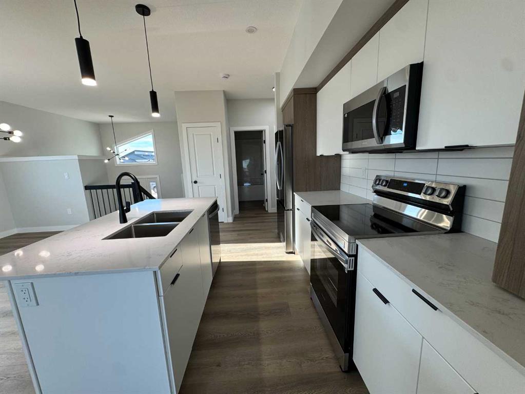 This brand new upper suite will be ready for a tenant immediately. Features include modern finishings with open concept, stainless steel appliances, gas fireplace in living room, in suite laundry, back deck, single car garage, fenced yard. Rent is $2550 plus $350 for utilities. Some pets will be allowed for an additional $100 per pet per month. Damage deposit one month\'s rent.