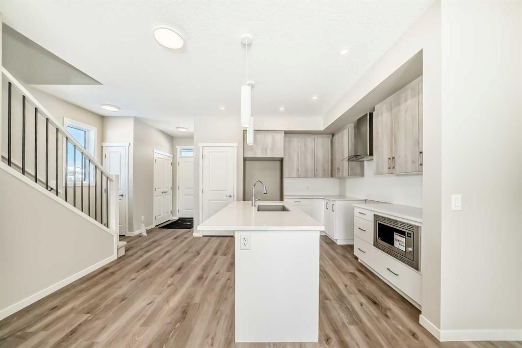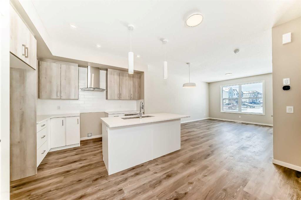 Welcome to the Barwell in Mahogany, an intelligently designed laned home that blends everyday function with elevated lifestyle appeal in one of Calgary’s most sought after lake communities. Offering 1,515 sq. ft. of thoughtfully planned living space, this brand new home delivers the comfort, style, and flexibility today’s buyers are looking for. The main floor is bright and inviting, featuring 9’ ceilings and durable luxury vinyl plank flooring throughout. At the front of the home, the spacious living room creates a warm and welcoming place to relax or gather with guests, while the heart of the layout unfolds into a beautifully arranged L-shaped kitchen with sleek quartz countertops, contemporary cabinetry, and plenty of prep and storage space. Just beside it, the generous dining area is perfectly positioned for family meals, casual entertaining, or hosting friends. Tucked discreetly off the kitchen, a convenient pocket office adds valuable versatility for working from home, managing daily routines, or creating a dedicated study space. Upstairs, the layout continues to impress with three well-proportioned bedrooms, including a spacious primary retreat designed to feel like a true escape. The ensuite features a tile-to-ceiling shower that adds a polished, upscale touch to your daily routine. Thoughtful finishing details such as painted spindle railings on the main level and knockdown ceiling texture contribute to the home’s clean, modern aesthetic. A separate side entrance opens the door to future possibilities in the basement, whether for extended family, added flexibility, or future income potential (a secondary suite would be subject to approval and permitting by the city/municipality). The basement also includes a wet bar rough-in, making it even easier to bring your future development ideas to life. One of the standout features of this property is the lot itself. The oversized side yard offers a rare opportunity for buyers who value outdoor space and flexibility. Whether you envision an expansive backyard retreat, room for kids or pets to play, a stunning outdoor entertaining area, or even the potential for a larger garage configuration, this unique lot gives you options that are hard to find in this style of home. It’s the kind of space that lets you truly create your dream backyard. Beyond the home itself, Mahogany is a community that needs little introduction. Known for its four-season lake lifestyle, residents enjoy access to Calgary’s largest lake, private beaches, a Beach Club, extensive parks and playgrounds, and over 22 kilometres of community pathways, along with natural wetlands and scenic open space. Local shops, restaurants, and everyday amenities are also woven into the community, making it easy to enjoy both convenience and recreation close to home. It’s a neighbourhood built around connection, outdoor living, and lifestyle—where summer days can be spent at the lake, evenings on the pathways, and everyday errands are just minutes away.