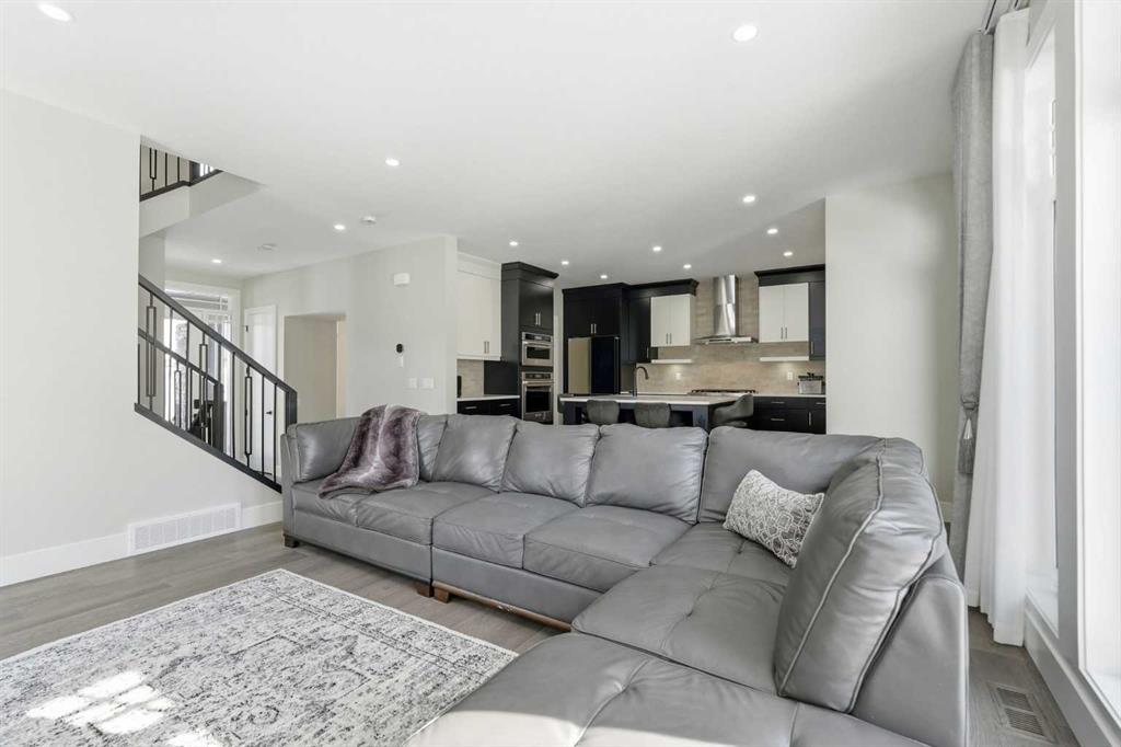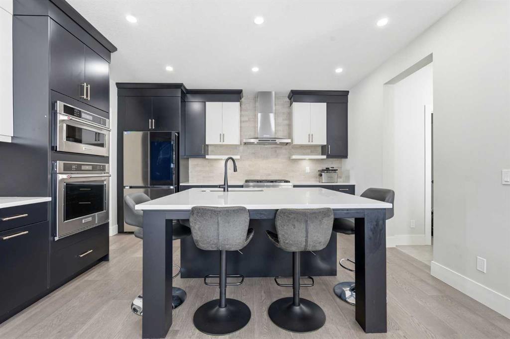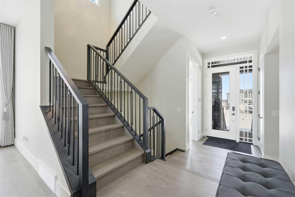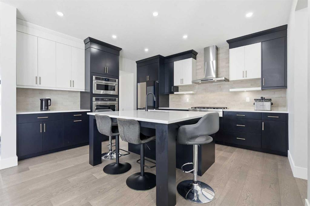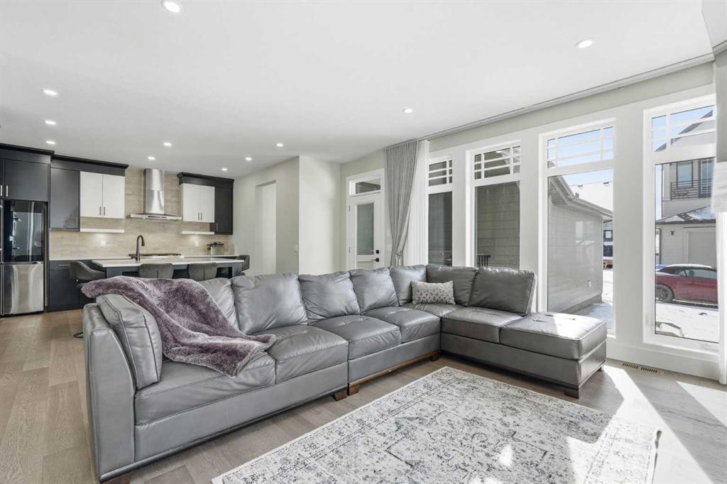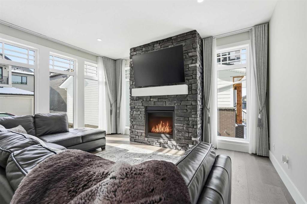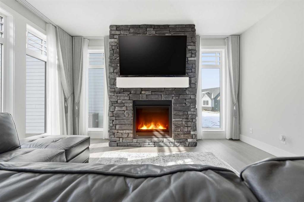 Discover your dream home in this 2025 build Foursquare style design, blending timeless character with a practical layout, thoughtful details, and PARK-FRONT Living! Located in one of Calgary\'s newest community, Alpine Park, this home features a symmetrical design, 5 BEDROOMS and a welcoming covered front porch, making it a perfect spot to relax while watching the kids play in the front park. With over 3,500 sf of finished space, this layout is both functional and beautiful. The exterior is finished with HARDIE BOARD siding and brick, while inside, warm hardwood floors, and elevated ceilings bring comfort and style together. The kitchen is fitted with quartz counters, a spacious potential walk-through pantry, stainless steel appliances including a GAS RANGE & built in oven, it flows seamlessly into the living room featuring expansive windows allowing the space to fill with natural light, highlighted by a stunning brick wall and gas fireplace. The semi-formal dining room with 10\' ceilings makes for a more intimate overall dining experience with family/friends. Rounding out the main floor is the stunning office/flex room with four large windows with great views of the park. Upstairs offers three generously sized bedrooms, and a bonus room - for gathering or retreat. The primary suite is a standout, complete with a freestanding tub, large tile shower, double vanities. It also features an impressive walk-in closet, and a thoughtful layout that adds everyday ease and flow. The fully finished basement expands the living space with two additional spacious bedrooms, 4pc bathroom, and a rec/media room. Additional highlights include a side covered porch w/ bbq gas line, REAR ATTACHED DOUBLE GARAGE, and the Alberta New Home Warranty. Plus easy access to the mountains, via Stoney trail, and just minutes from Costco, shopping, parks, schools, dining, and scenic walking paths!