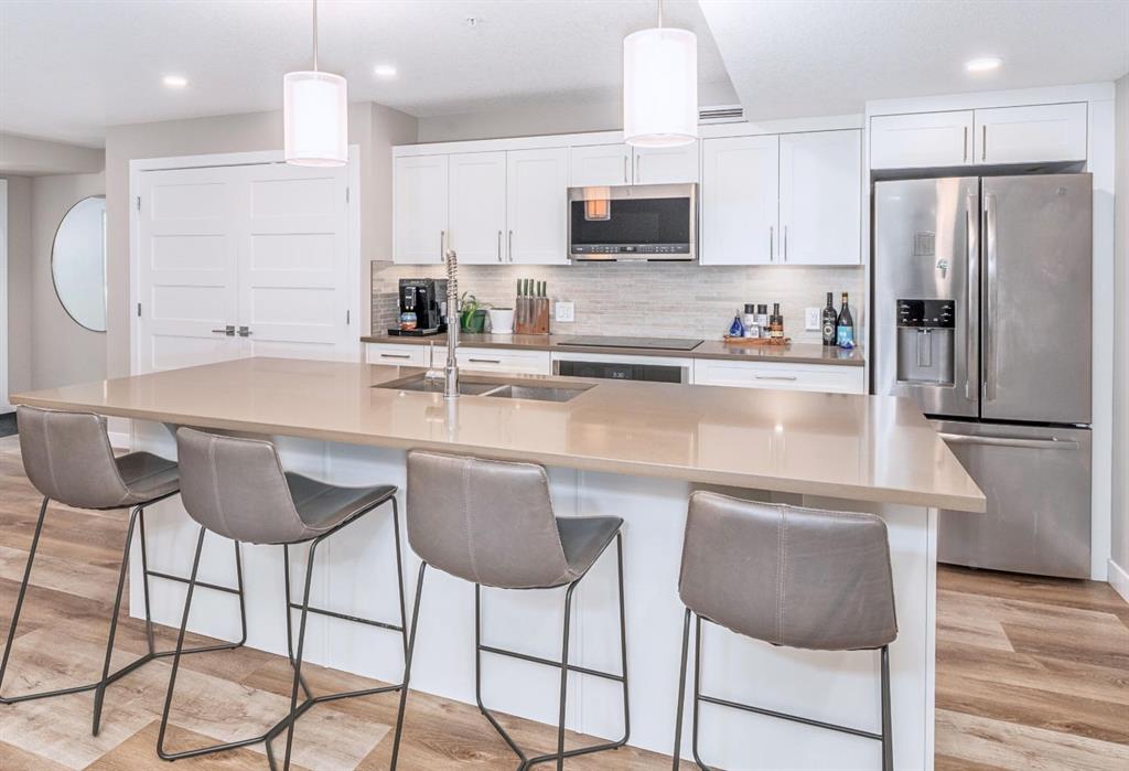 In the heart of Canmore, surrounded by the breathtaking peaks of the Canadian Rocky Mountains, this beautifully appointed two-bedroom, two-bathroom home offers an exceptional blend of modern serenity and vibrant mountain town living. Ideally situated just half a block from downtown, this home invites you to embrace a lifestyle where every convenience is only a short stroll away. Just steps outside your door you can immerse yourself in Canmore’s dynamic and welcoming community—where charming art galleries, boutique yoga studios, the Canmore Public Library, and the renowned artsPlace Canmore create a rich cultural backdrop. Indulge in locally roasted coffee, explore artisan shops, or unwind in nearby parks before wandering along the scenic trails that trace the famous Bow River. Tucked safely in off the street, amongst a charmingly landscaped courtyard, you come upon your own private entrance. No elevator or lobby to navigate when leaving your car at home. Once inside, the home exudes warmth and modern comfort. The open-concept living space is thoughtfully designed for both relaxation and entertaining, anchored by a cozy gas fireplace that invites quiet evenings after a day in the mountains. A sleek, contemporary kitchen flows effortlessly into the living and dining areas, creating a welcoming atmosphere for gathering with family and friends. The spacious primary suite features a private ensuite, offering a peaceful retreat at day’s end, while in-suite laundry and secure titled underground parking ensure everyday ease and practicality. Leave your car behind and enjoy the freedom of walkable living in one of Alberta’s most sought-after mountain towns. This is more than a home—it’s a lifestyle defined by natural beauty, community connection, and effortless convenience, all woven seamlessly into the fabric of everyday living. Call to view today!