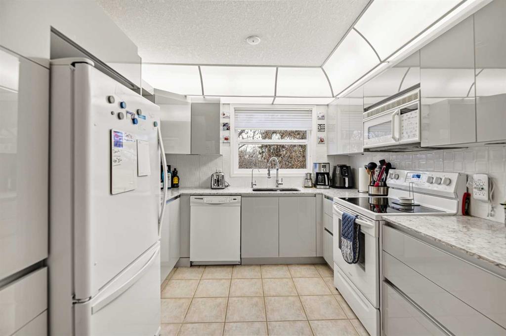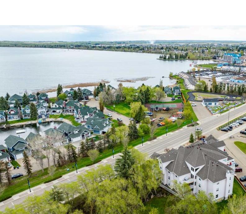 This beautifully maintained 2-bedroom, 2-bathroom condo offers the perfect blend of comfort, functionality, and a true sense of community—ideal for those looking to simplify without sacrificing lifestyle. Step inside to discover a recently renovated kitchen that feels both fresh and inviting. A rare and thoughtful feature, the kitchen sink is perfectly positioned under a window, something seldom found in condo living. The open-concept living and dining area is bright and airy, with high ceilings and large windows facing towards the lake. Patio doors lead you to your private west-facing deck, complete with a gas line for your BBQ—the perfect place to enjoy quiet mornings or take in beautiful sunsets, all while being gently sheltered by mature trees for added privacy. The primary bedroom features its own ensuite, and walk in closet, while the second bedroom and full bath offer comfortable space for guests. You’ll also appreciate the convenience of in-suite laundry with additional storage, making everyday living that much easier. A truly special feature of this home is the unique loft space above, adding a flexible living area. Overlooking the main living room, it’s an ideal spot for a cozy reading nook, home office, or hobby space. This adult-only building is known for its warm, friendly atmosphere—where neighbours know each other and a genuine sense of community is felt. At the back of the building, you’ll find a shared green space with a fire pit and gathering area, perfect for spending time with friends and family. Additional highlights include: one heated underground parking stall, additional surface parking available, shared workshop/bench space in the garage for those who enjoy hands-on projects. Located next to the golf course, marina and the downtown area of Sylvan Lake.