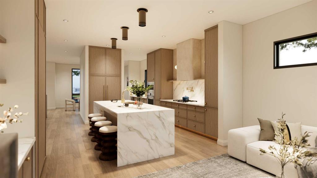 An artisanal masterpiece awaits, steps to Confederation Park, where every detail has been meticulously curated by a builder renowned for impeccable taste. Approaching the home, a large covered front patio welcomes you, setting the tone for a residence that is truly a cut above. Inside, the open~concept main floor is designed for both grand entertaining and everyday living. The front formal dining area features an adjacent wine display and a hidden butler’s pantry, both encased in elegant white oak feature walls, while a tucked away hidden home office seamlessly blends sophistication with functionality. The expansive kitchen with panel ready JennAir appliances blends effortlessly into the living room at the back. Anchored by a striking stone cast gas fireplace hearth and complemented by a discreet powder room and spacious mudroom, this main floor leaves nothing to be desired. Ascending to the upper floor, the master suite impresses with an 18~foot vaulted ceiling and 12~foot double sided stone gas fireplace, offset by a freestanding tub. The ensuite exudes a moody, indulgent vibe with accent lighting, a large steam shower with body jets, and a raindrop shower head. The walk~in closet is the size of a secondary bedroom, filled with natural light from a skylight, lit accent cabinetry and a glass countertop valet stand. Two additional bedrooms, each with tray ceilings, starlights, and backlit crown moulding, also feature their own walk~in closets and ensuites. With a conveniently located (and magazine worthy) laundry room completing this space. The lower level continues the theme of refined living, offering a large living area with projector and screen, a wet bar with island, and an additional versatile home office space with glass wall detailing. A private large fourth bedroom for a family member or guests, includes a massive walk~in closet ideal for additional home storage. Even the mechanical room is a statement piece, finished with diamond checker plate walls and epoxy floors. Throughout the home, thoughtful features abound. The oversized garage is also heated and fully finished with epoxy flooring, and the upper bathrooms are connected to an instant hot water system, All closets are finished in a thermally fused laminate material, complemented again by fully installed air conditioning system, and speaker system throughout. This is a home that marries unparalleled craftsmanship, intelligent design, and luxurious finishes at every turn. From the moment you arrive to the final detail in the basement, this home is a true reflection of bespoke elegance. Est completion July 2026.