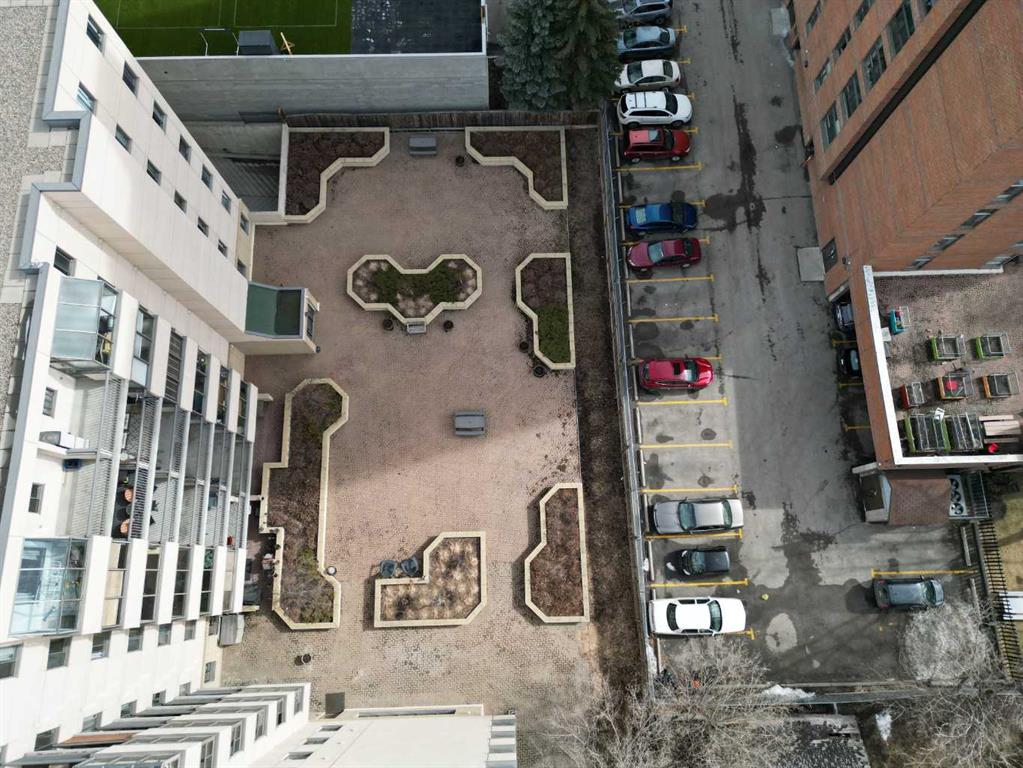This south-facing open plan 1-bedroom unit features laminate flooring throughout, bathroom, efficient kitchen with bonus island and portion of wall removed for better sight lines, stainless steel appliances and generous storage pantry. The sunroom (not included in the square footage) adds bonus flexible space, while the balcony overlooks a quiet private south courtyard. The building also offers an assigned underground parking stall, surface visitor parking, convenient main-floor laundry facilities (8 washers, 8 Dryers)and recently upgraded security and building access by way of Sticker for parkade, Fob, QR code, pin Code, and face recognition. Condo Fees include all utilities. Building is also pet and (max 50kgs)Air B&B Friendly, both subject to Board approval. For the Investor this is an excellent rental district, unit is currently Tenant Occupied (24 Hours Notice) at $1,625.00 per month, Tenant under lease contract until August 31, 2026 however would Consider, vacating early or staying on with new owner investor.