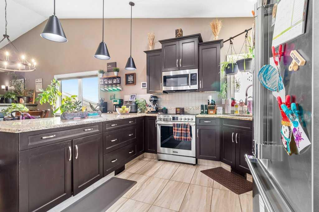 Welcome to A&B 5224 Lawton Avenue, in Blackfalds, AB. This beautifully maintained single family home with a legal suite is located on a well established street in the heart of Blackfalds. The main level offers a bright and spacious layout with three bedrooms and two full bathrooms, highlighted by gleaming hardwood floors, a stunning three way fireplace with granite top, oak wine rack and shelving. The kitchen features beautiful cabinetry, granite countertops, stainless steel appliances and a breakfast nook. The primary bedroom includes a large walk in closet and an ensuite with granite vanity and dual sinks. A door from the kitchen leads to a large dura deck with glass and aluminum railings overlooking the landscaped backyard, with additional storage located beneath the deck. The lower level legal suite offers a generous living space with high ceilings, three bedrooms and two full bathrooms, a beautiful kitchen with stainless steel appliances, spacious dining area, and its own private entrances. The legal suite opens to a concrete patio and a separate landscaped yard area. The home showcases outstanding curb appeal with a triple front garage (separated into two garages and designated to upper and lower units, measurements are; 24 x 18 for the main and 23 x 11 for the legal suite) , concrete driveway with stamped concrete trim and attractive stone accents. Each level has its own entrance, kitchen, laundry and fenced yard area. This property is conveniently located close to schools, parks, playgrounds, the Abbey Centre, shopping and easy access to Highway 2, while still being only minutes from Red Deer. Some updates that the current owners have recently added are; On upper level; Central AC, water filtration system , water softener, some new taps and light fixtures and appliances in 2024.