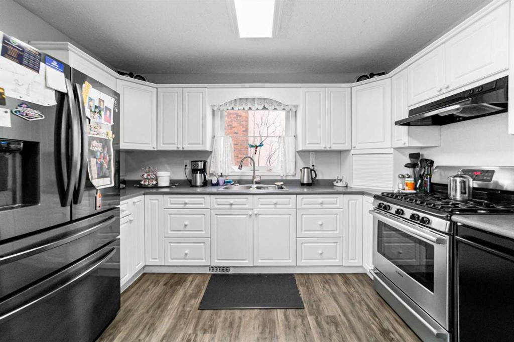 Welcome to this well-maintained, move-in-ready family home located in a quiet neighborhood in Camrose. The main floor features 3 bedrooms and 1.5 bathrooms, including a convenient 2-piece ensuite off the primary bedroom. The bright and functional kitchen offers newer appliances and a gas stove, while main floor laundry adds everyday convenience. The newly developed basement provides excellent additional living space with kitchen, living room, dining area, one bedroom, a full bathroom, plus a second set of laundry. Important mechanical updates include a new furnace (2024), central air conditioning (2024), and a newer hot water tank. Outside you’ll find a finished and heated double garage with built in storage, a large greenhouse, a fully fenced yard with patio, fruit trees, and a garden area. Alley access adds extra convenience and additional parking. This property shows nicely and offers a great combination of comfort, functionality, and outdoor space in a desirable, quiet location.