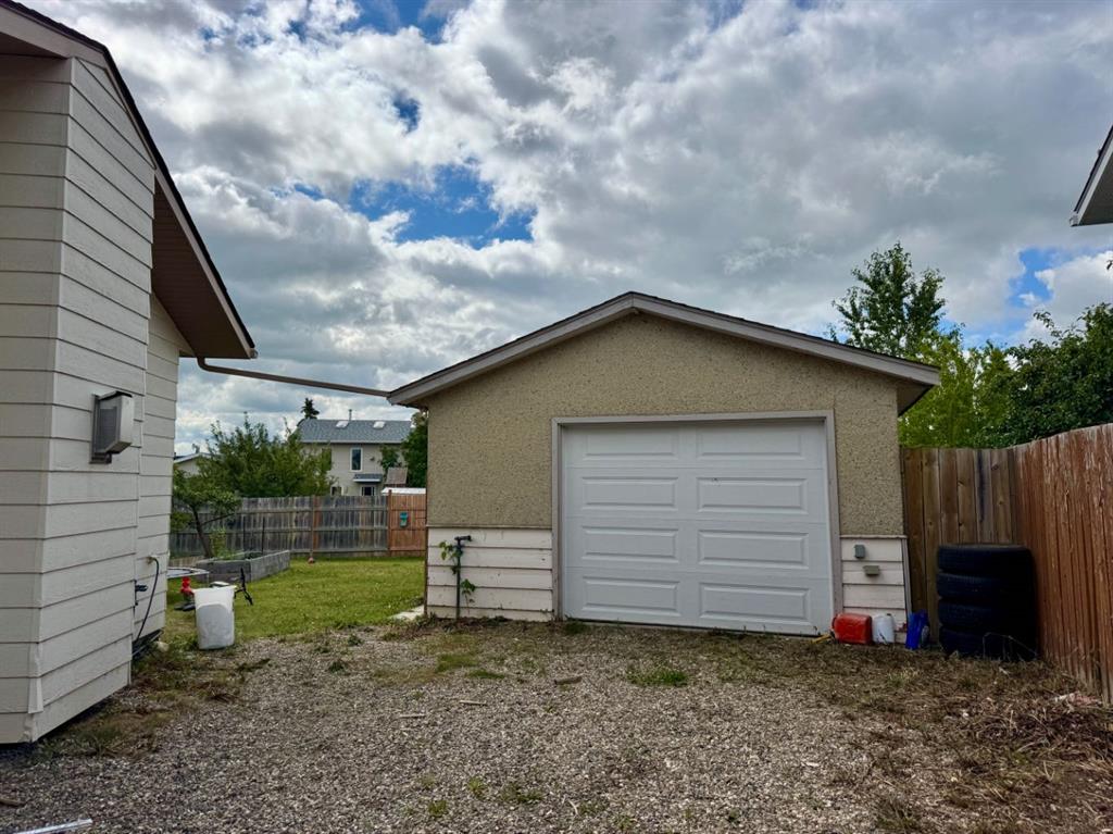 The large backyard offers back alley access — perfect for RV parking — plus a 16x30 detached garage with power, insulation, and a concrete floor. A 10x13 shed adds even more storage space.